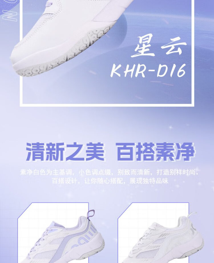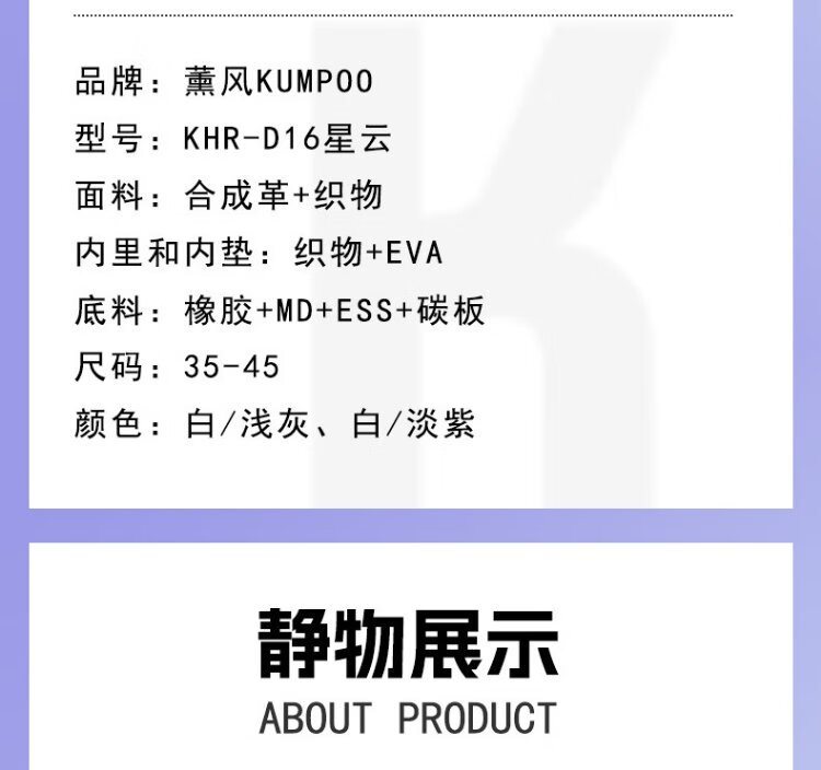 KUMPOO badminton shoes, breathable, non-slip, wear-resistant, shock-absorbing, men's and women's models, Nebula KHR-D16, white/light gray 37
