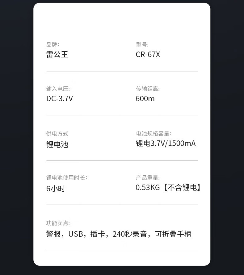 King Thunder Speaker Microphone Megaphone 240s Recording Speaker Loud Public Handheld Portable Tweeter Promotional Speaker CR-67X
