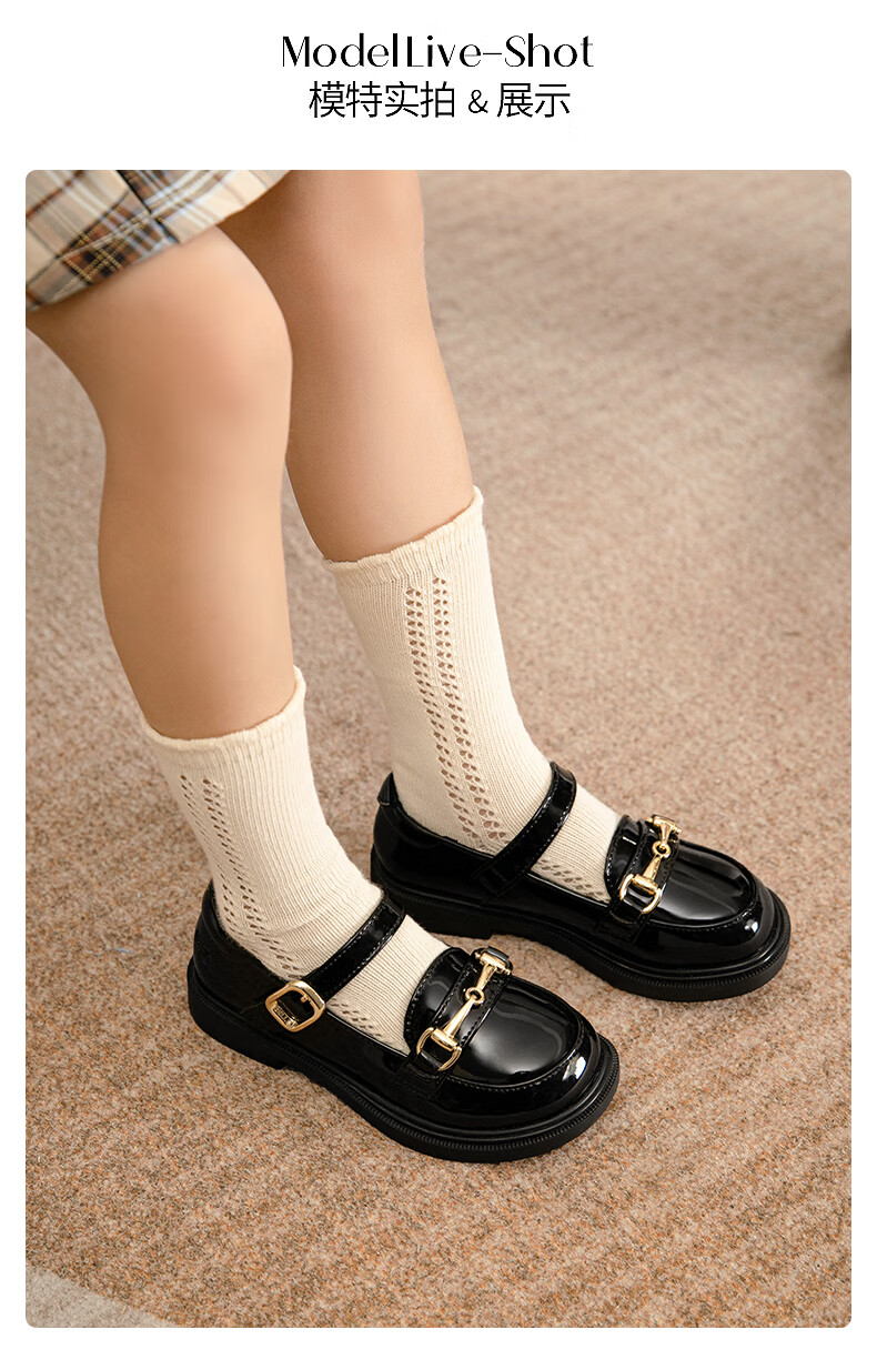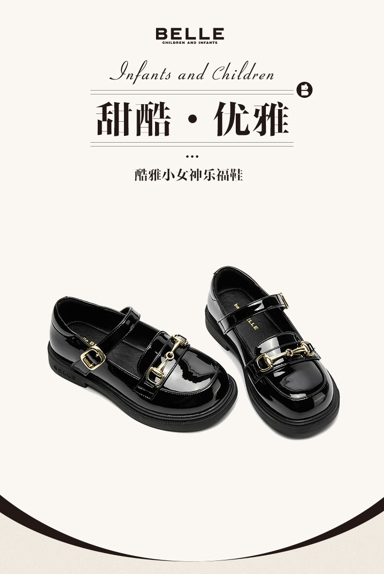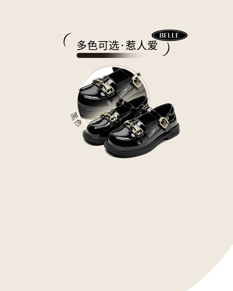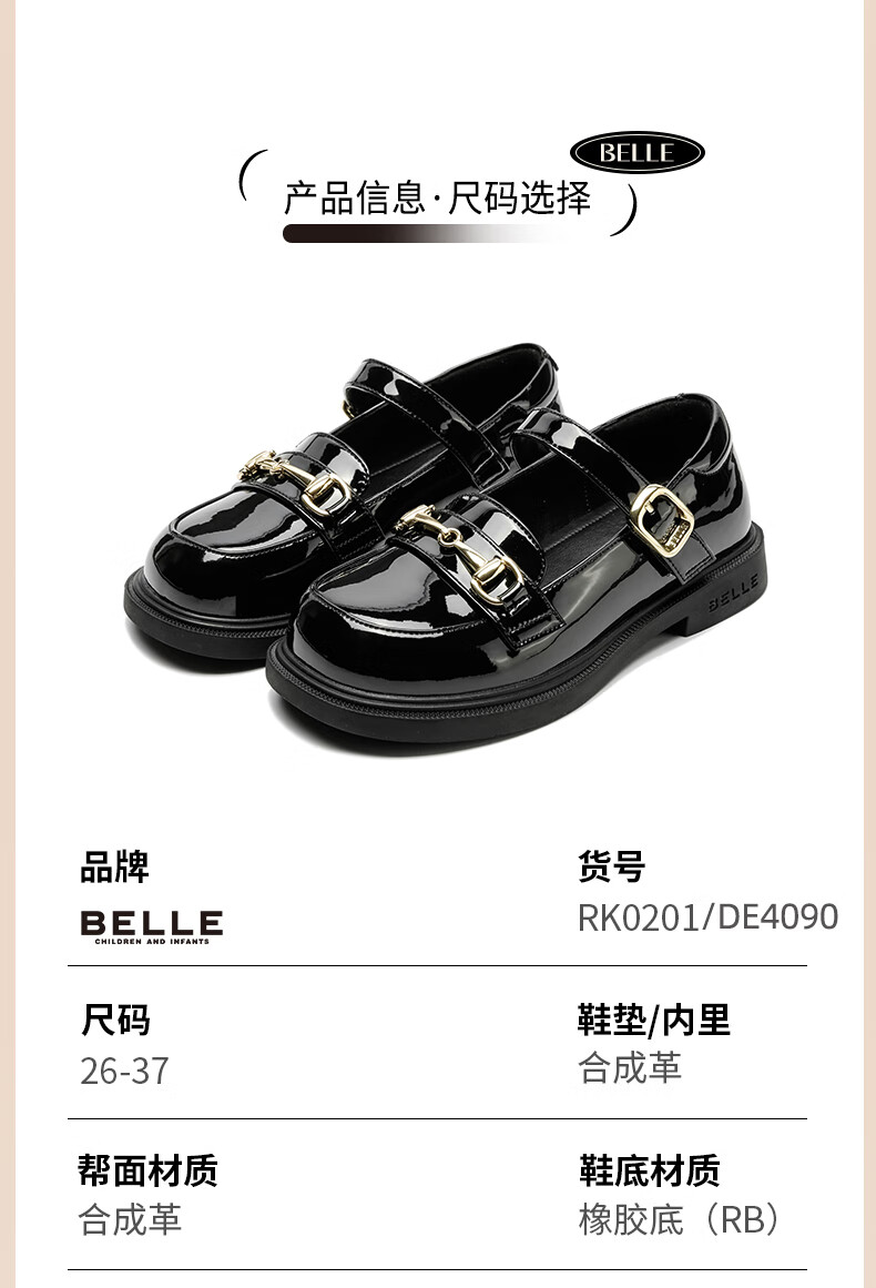 Belle Children's Shoes 25 Spring and Autumn Children's Leather Shoes Girls Performance Shoes Back to School Student Shoes Black Size 34