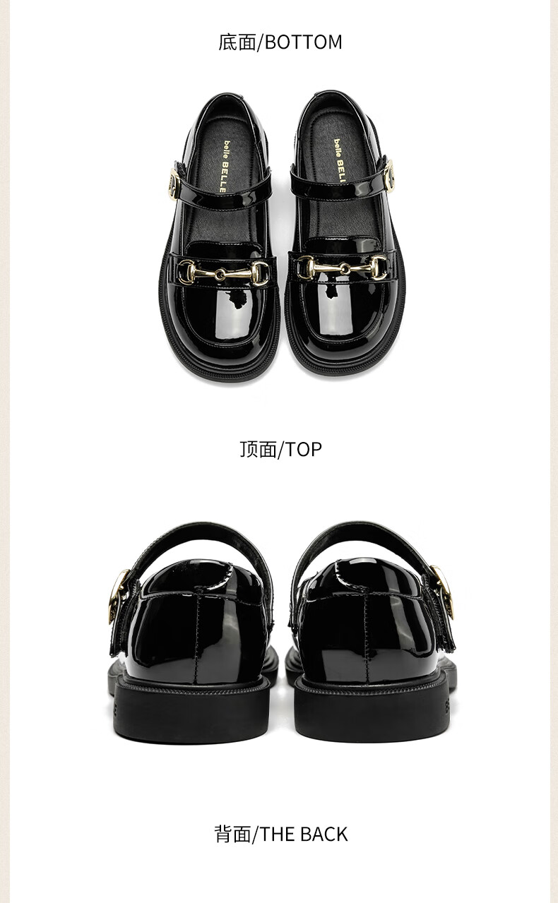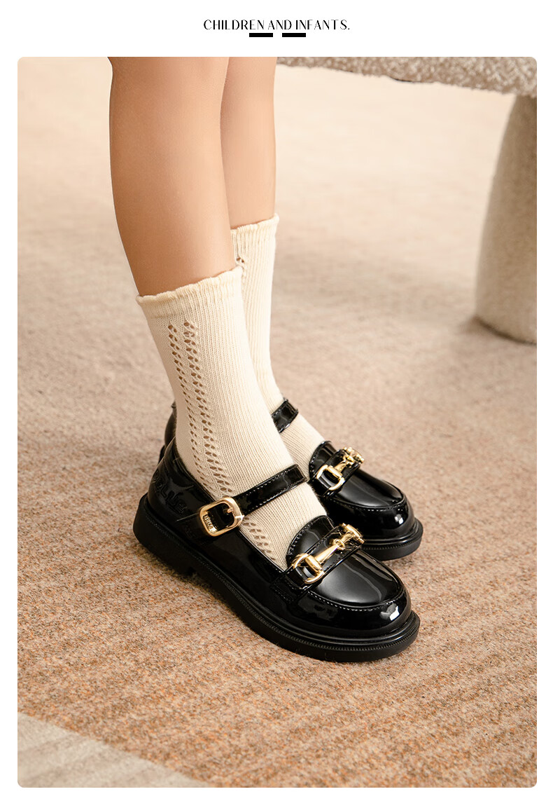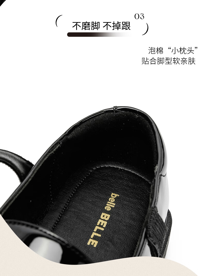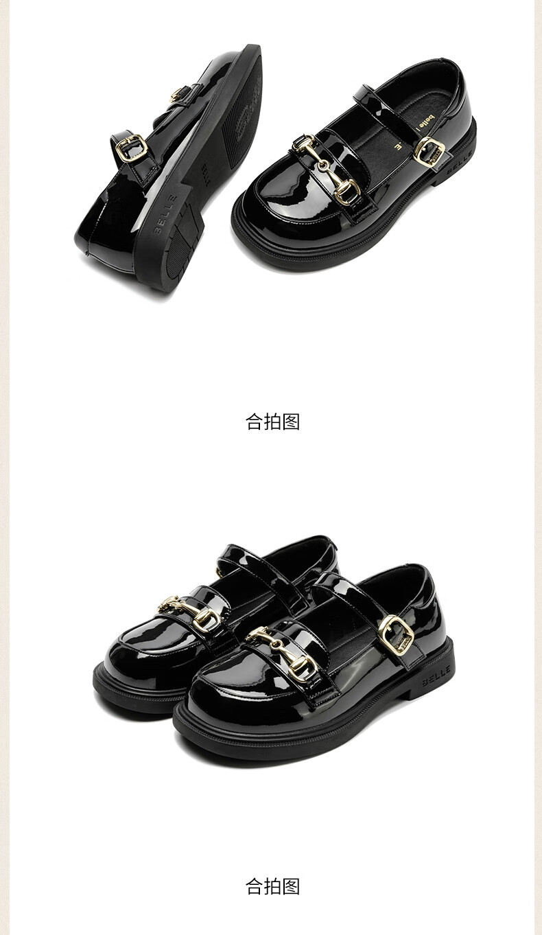 Belle Children's Shoes 25 Spring and Autumn Children's Leather Shoes Girls Performance Shoes Back to School Student Shoes Black Size 34