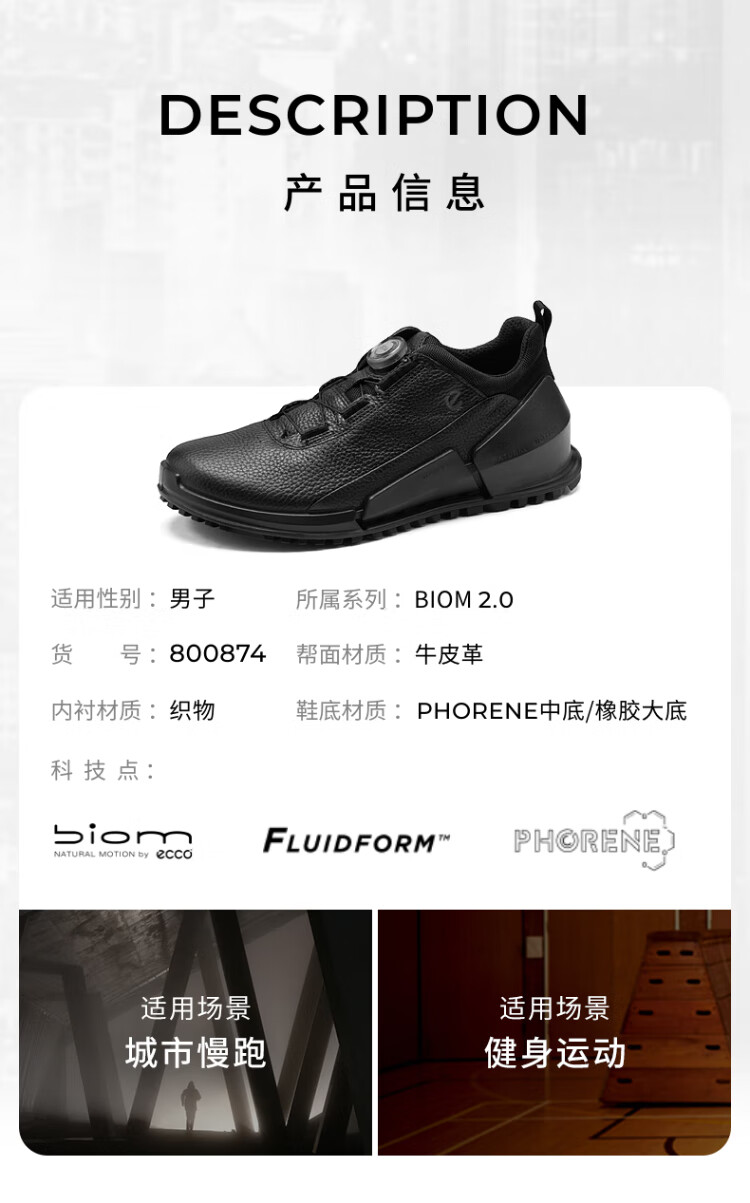 ECCO BIOM sports shoes for men, comfortable outdoor cushioning and traction running shoes, Jianbu 2.0 series 800874, black 42