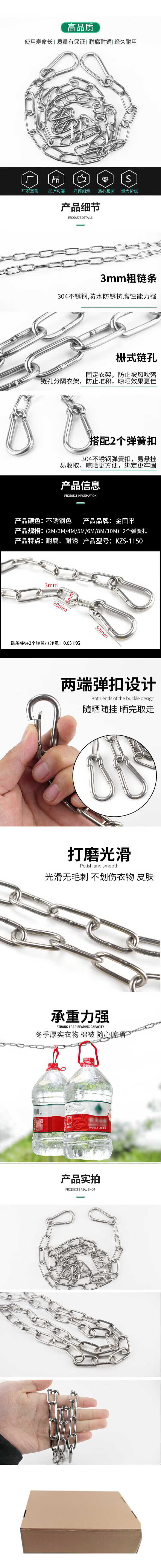 Jinguluo 304 stainless steel chain outdoor 3mm thick chain 5m + 2 spring buckles KZS-1150