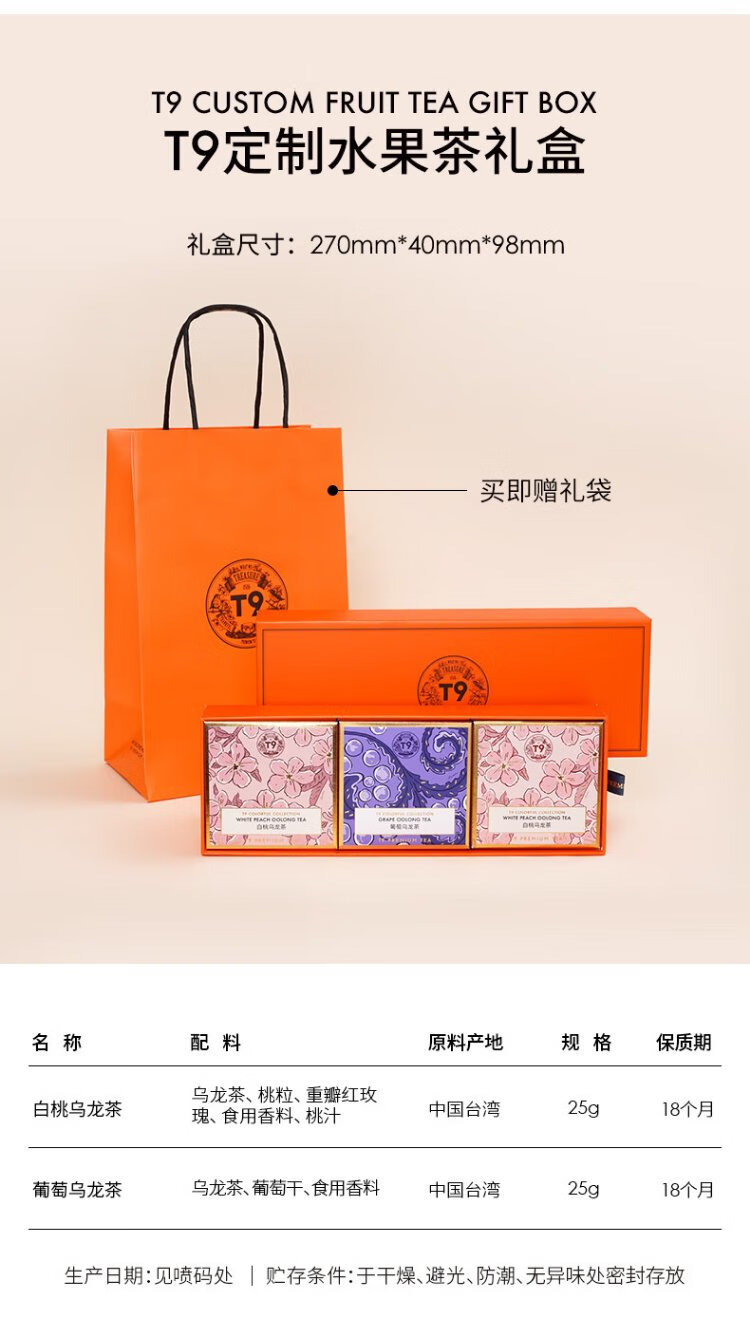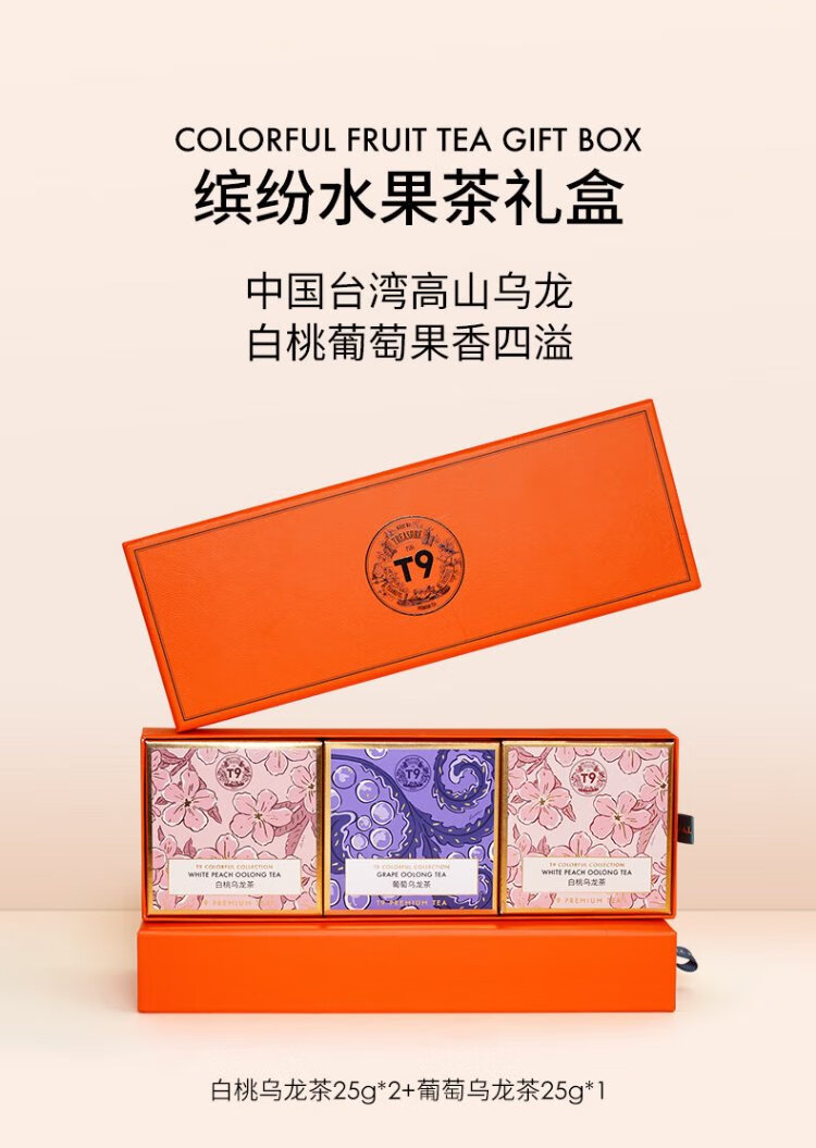 T9 colorful flower and fruit tea gift box white peach grape oolong tea 75g China Taiwan high mountain tea cold brew souvenir gift