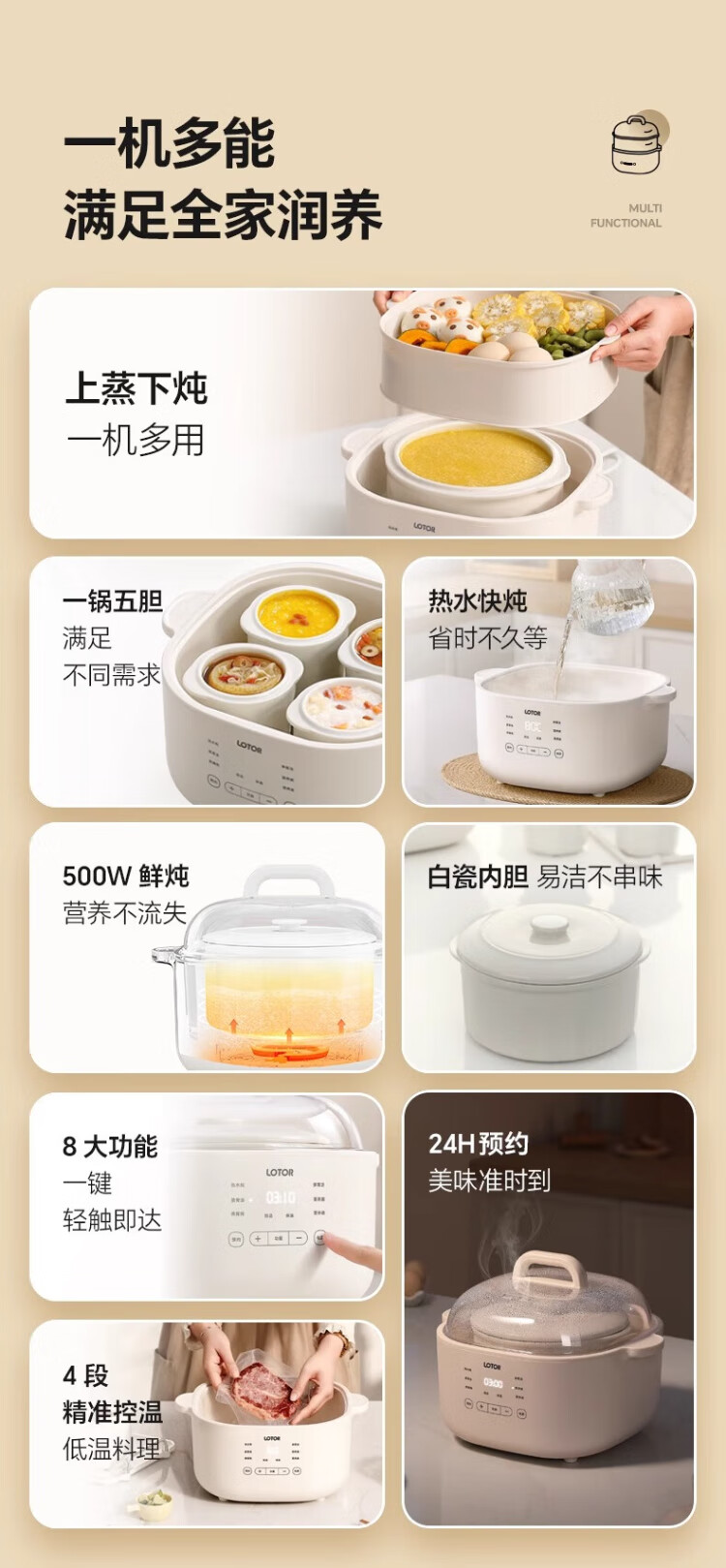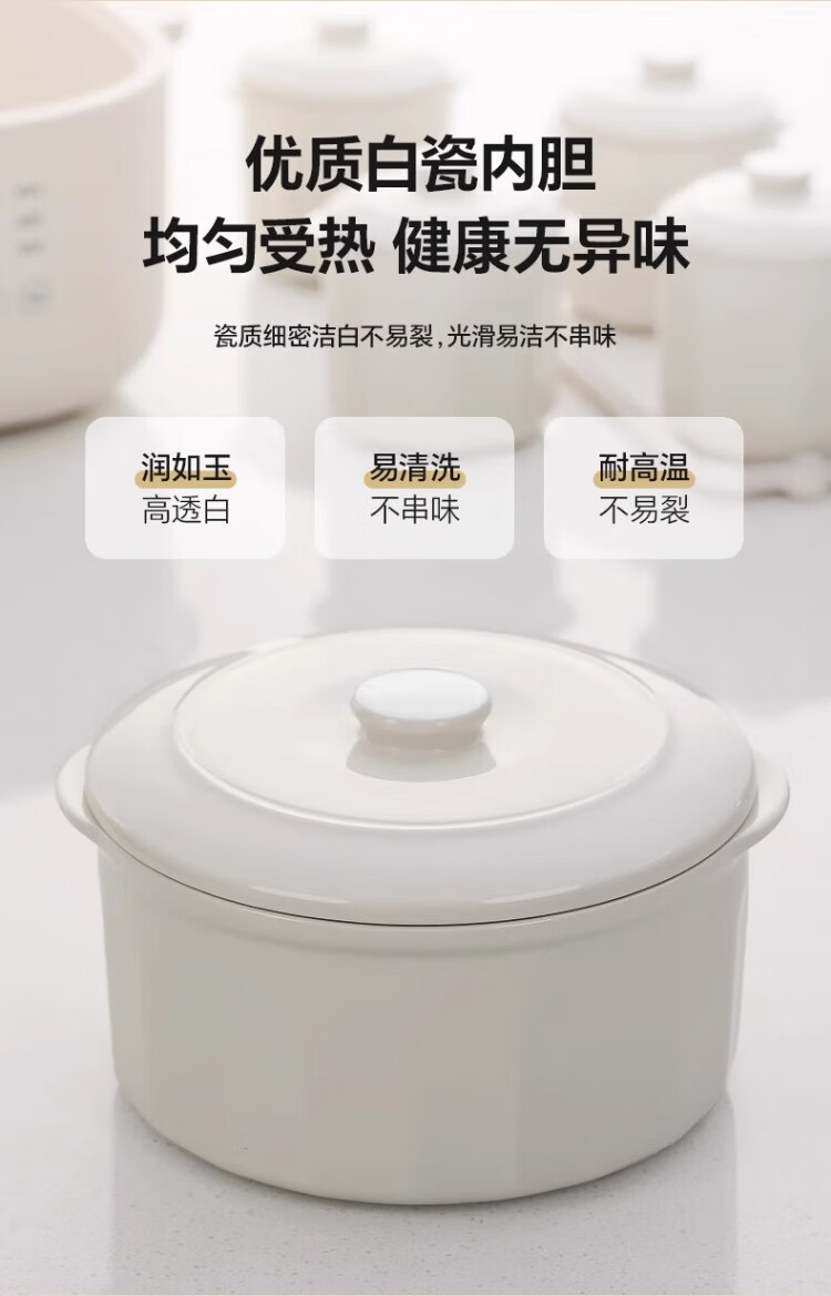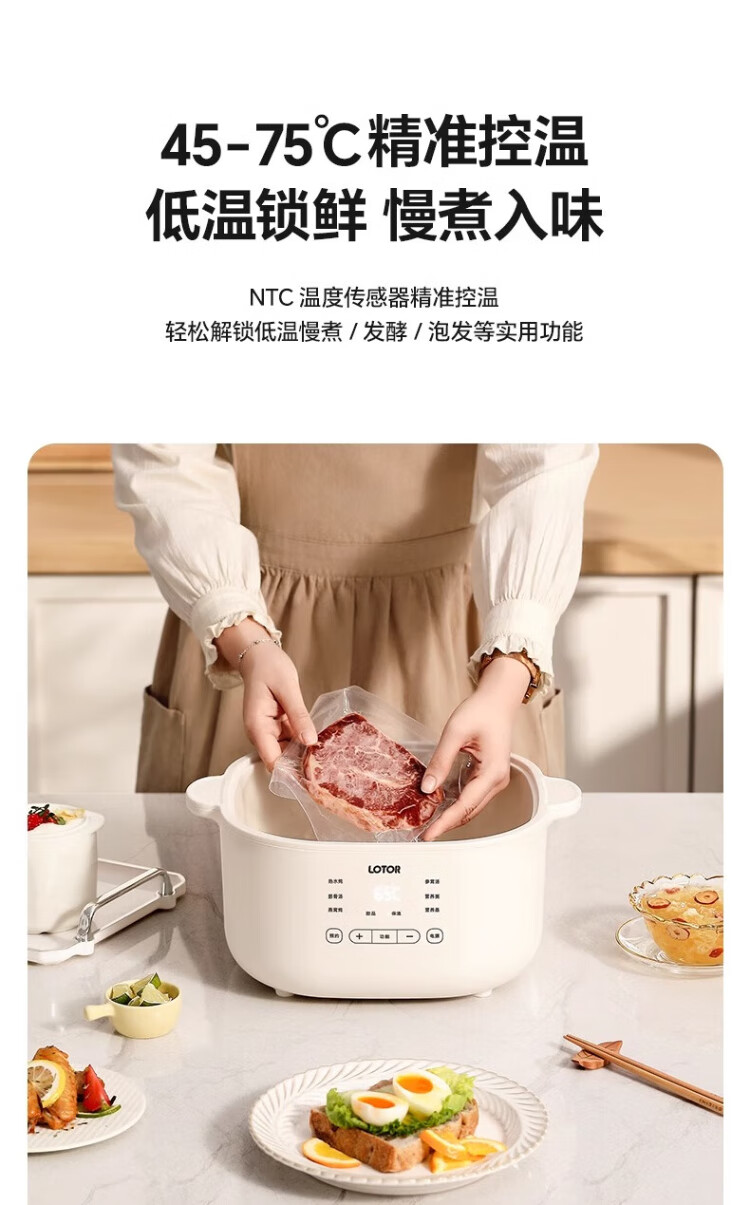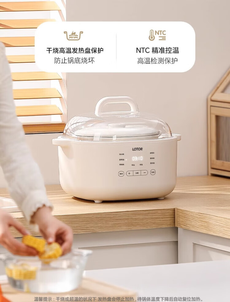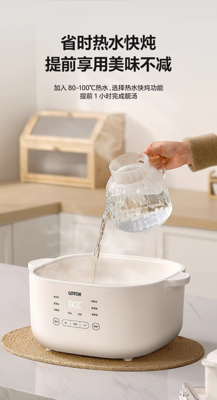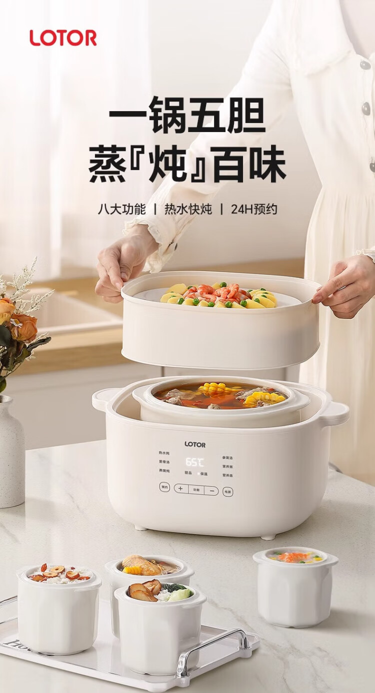 LOTOR White electric stew pot multi-function pot electric cooking pot soup pot household large-capacity water-proof stew pot baby food supplement electric steamer porridge pot D31 five-gallon style