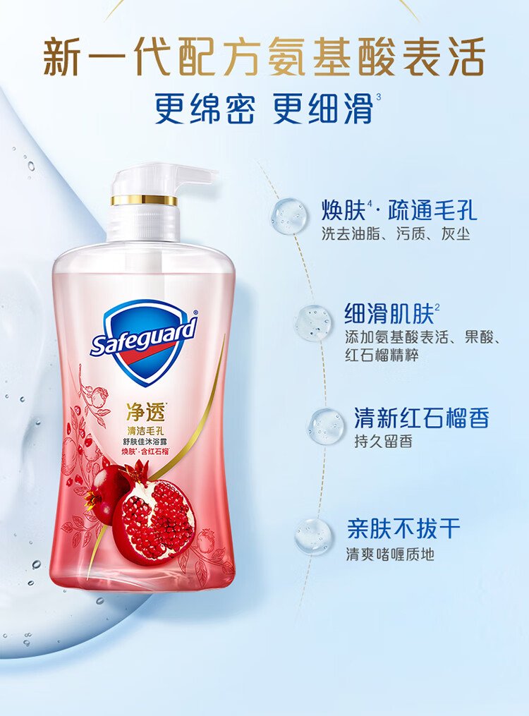 Safeguard Shower Gel with Red Pomegranate Fragrance 380g Contains Fruity Acid and Long-Lasting Fragrance Same Style as Wang Chuqin