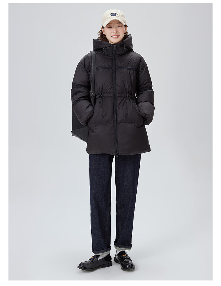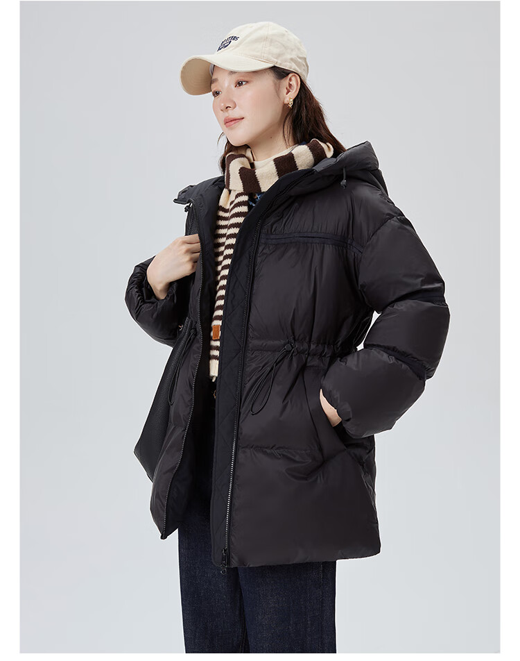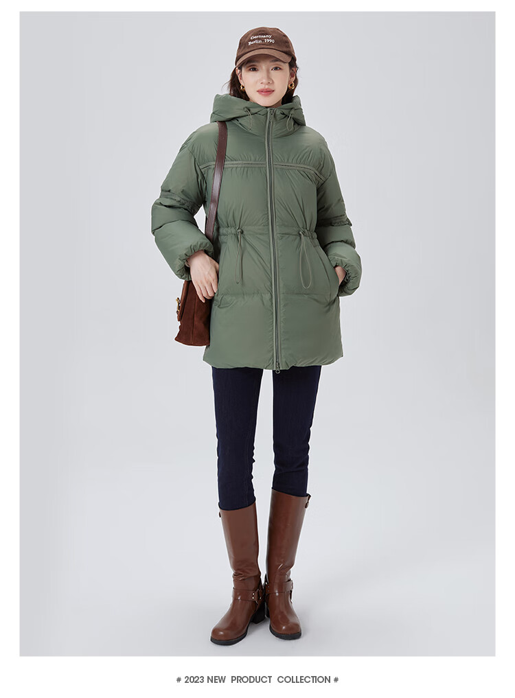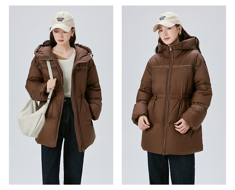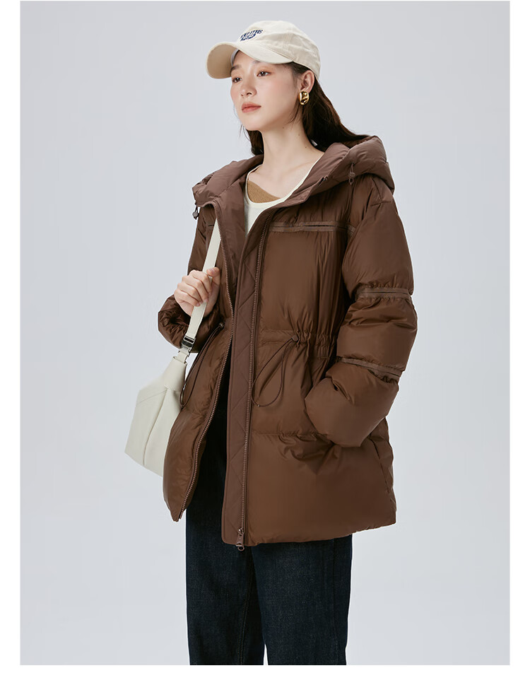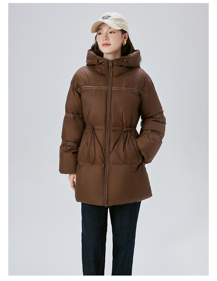 Ai Lai Goose Down Down Jacket Feminine Fashion Short Drawstring Waist Hooded Jacket Winter Honey Tea Brown 155