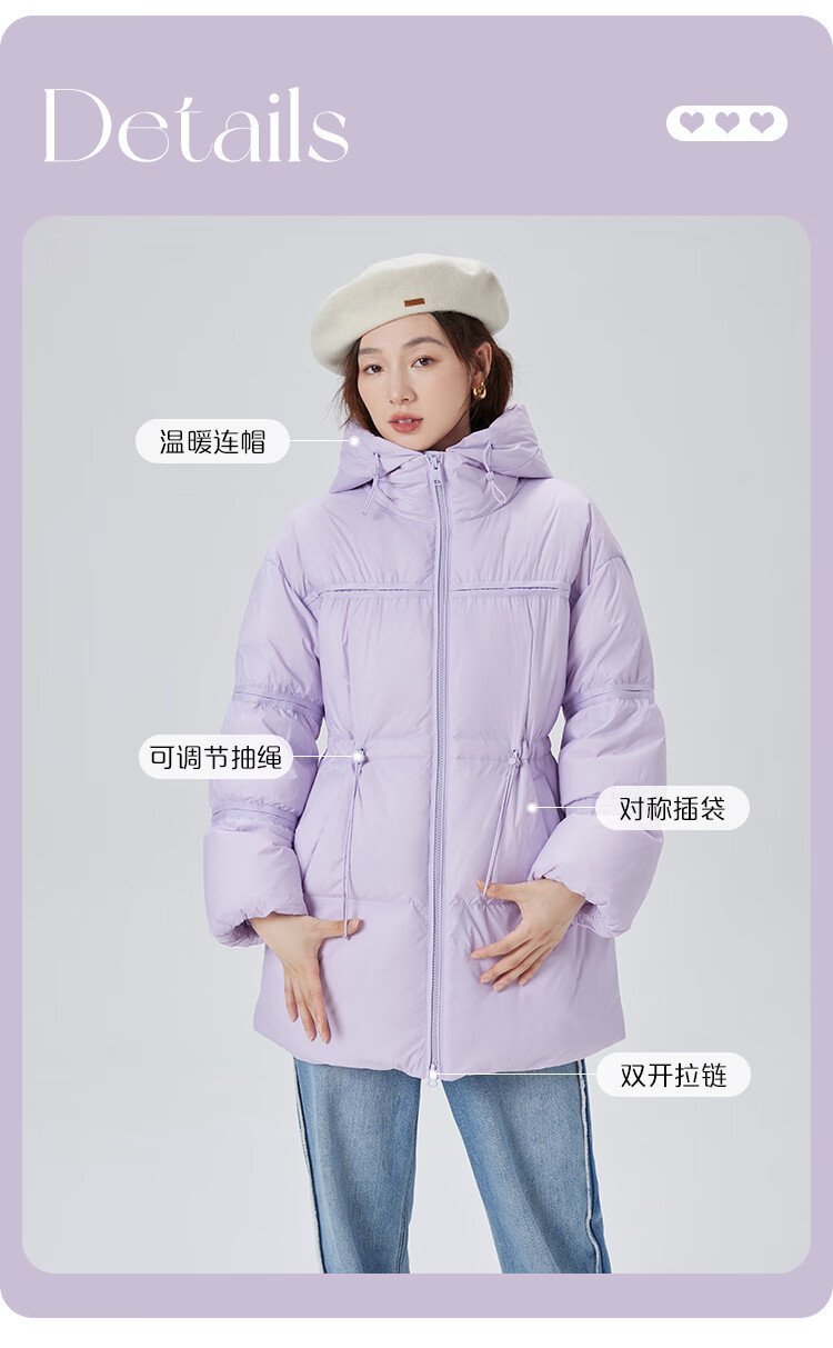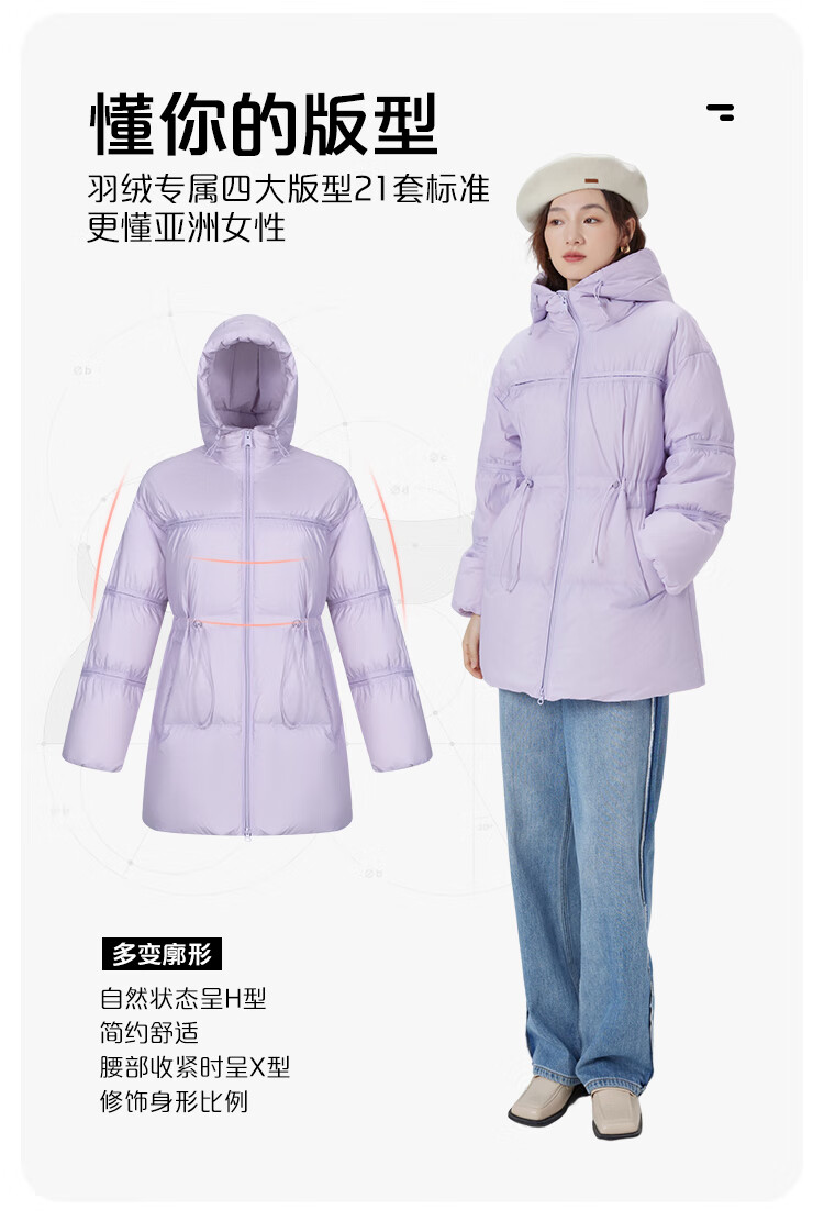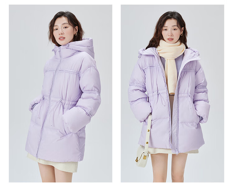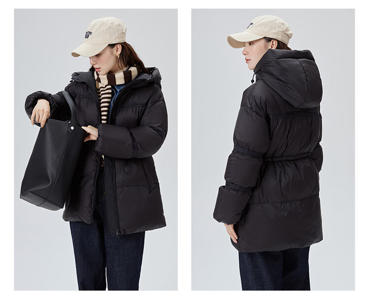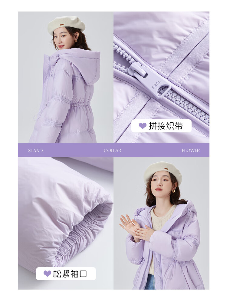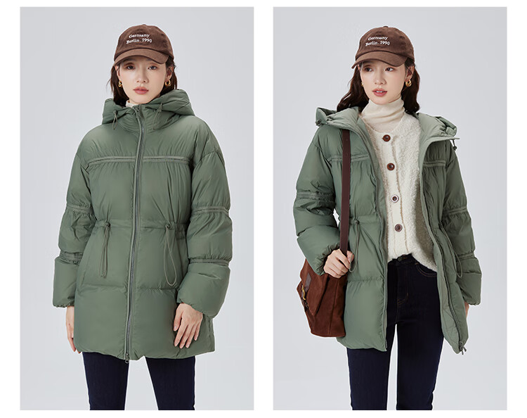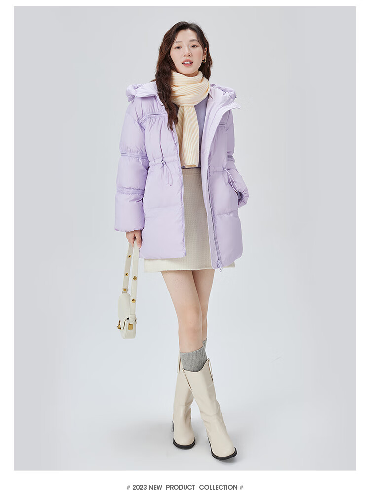 Ai Lai Goose Down Down Jacket Feminine Fashion Short Drawstring Waist Hooded Jacket Winter Honey Tea Brown 155