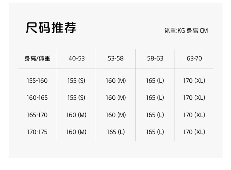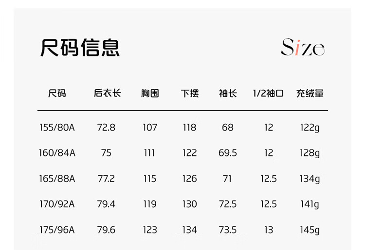 China (cm) 160-165/84-86 165-170 / 88-90 167-172 / 92-96 168-173 / 98-102 170-176 / 106-110