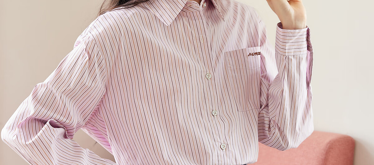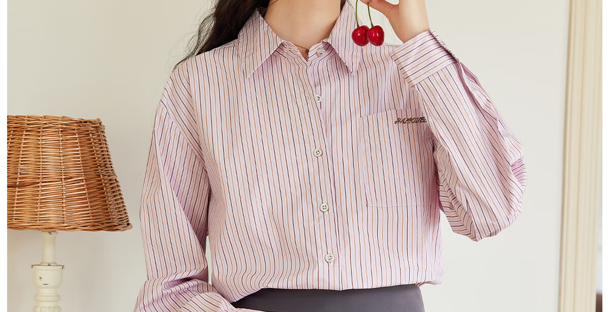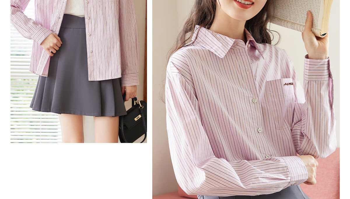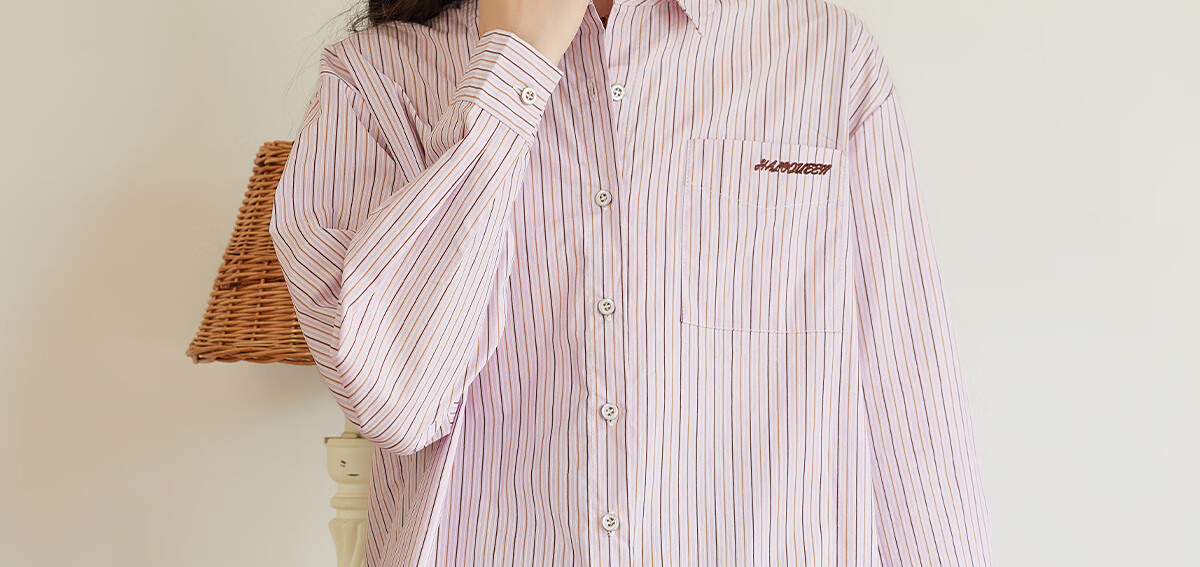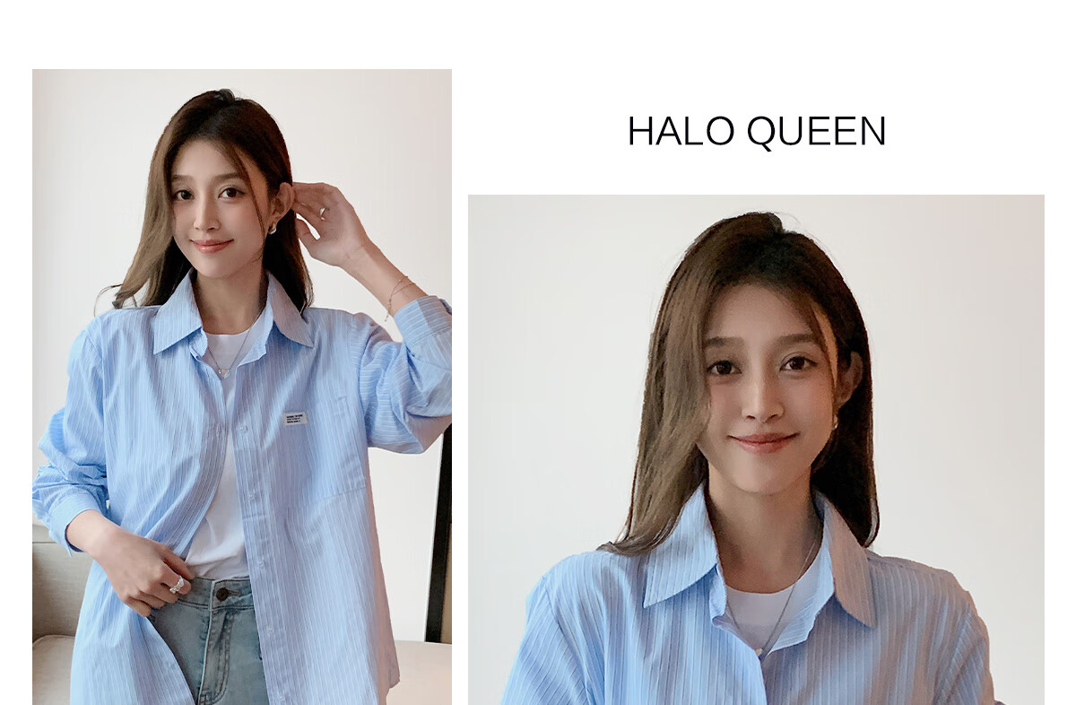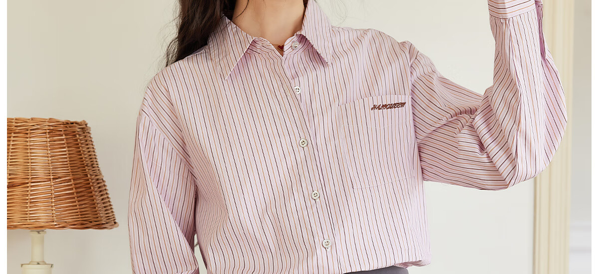 Halo Queen long-sleeved shirt women's niche design striped commuter shirt temperament versatile top H13KC2378