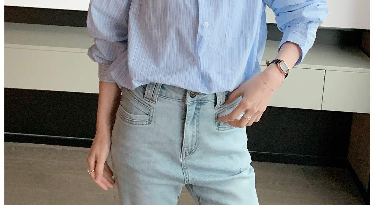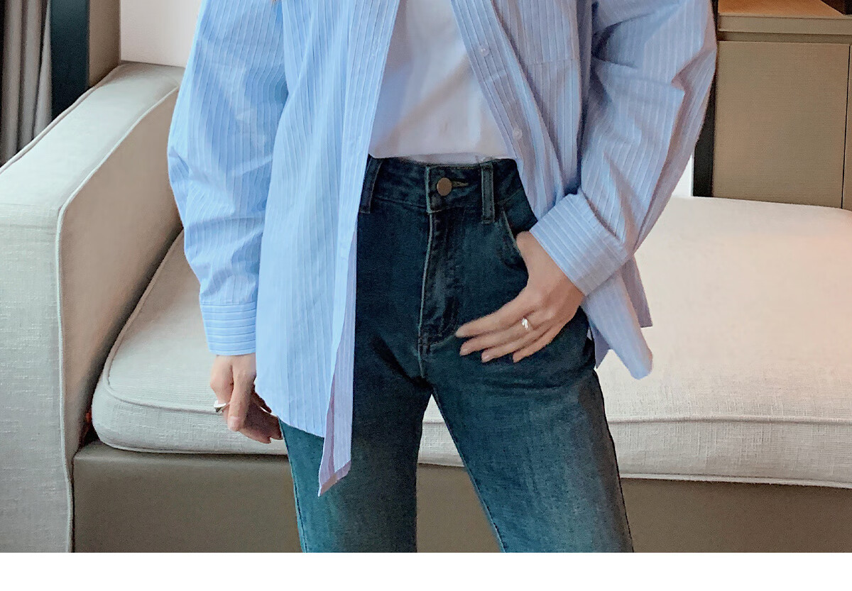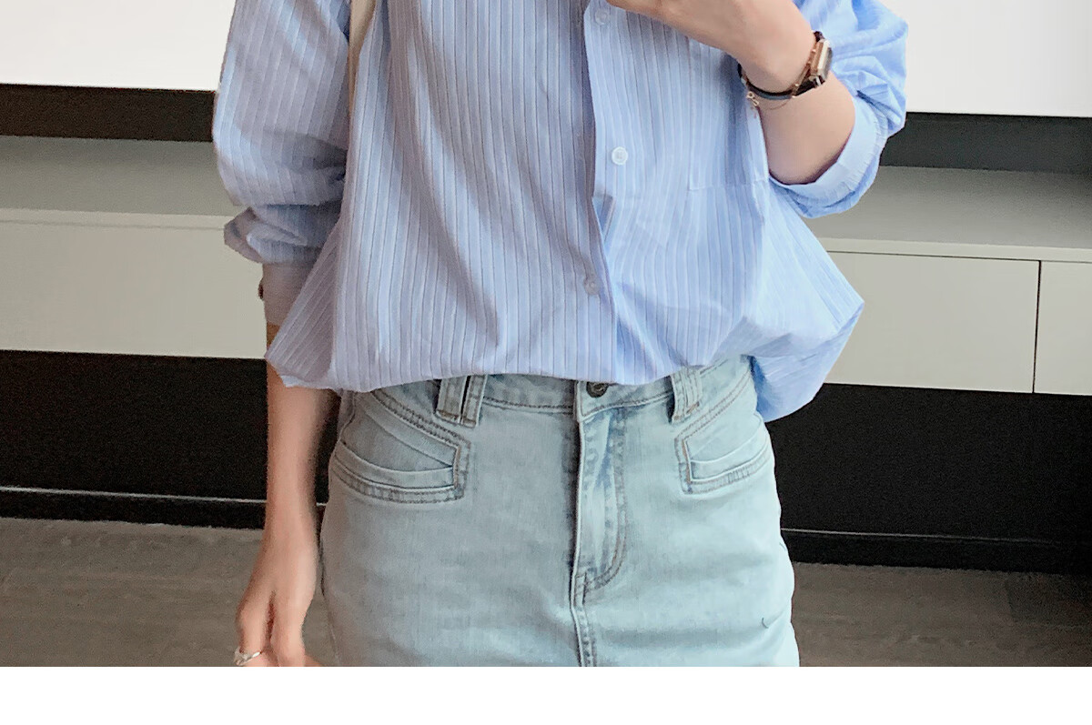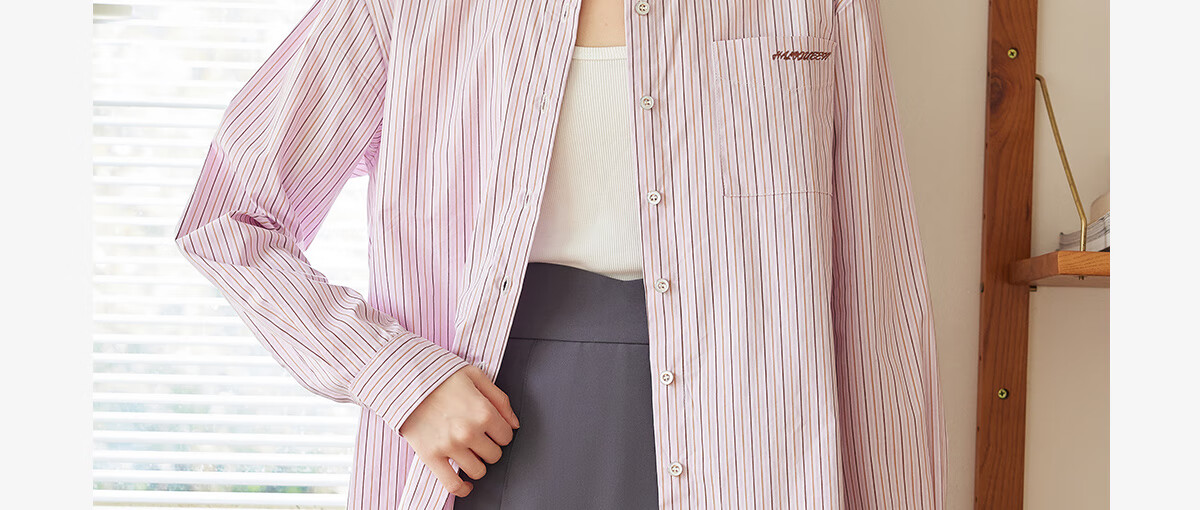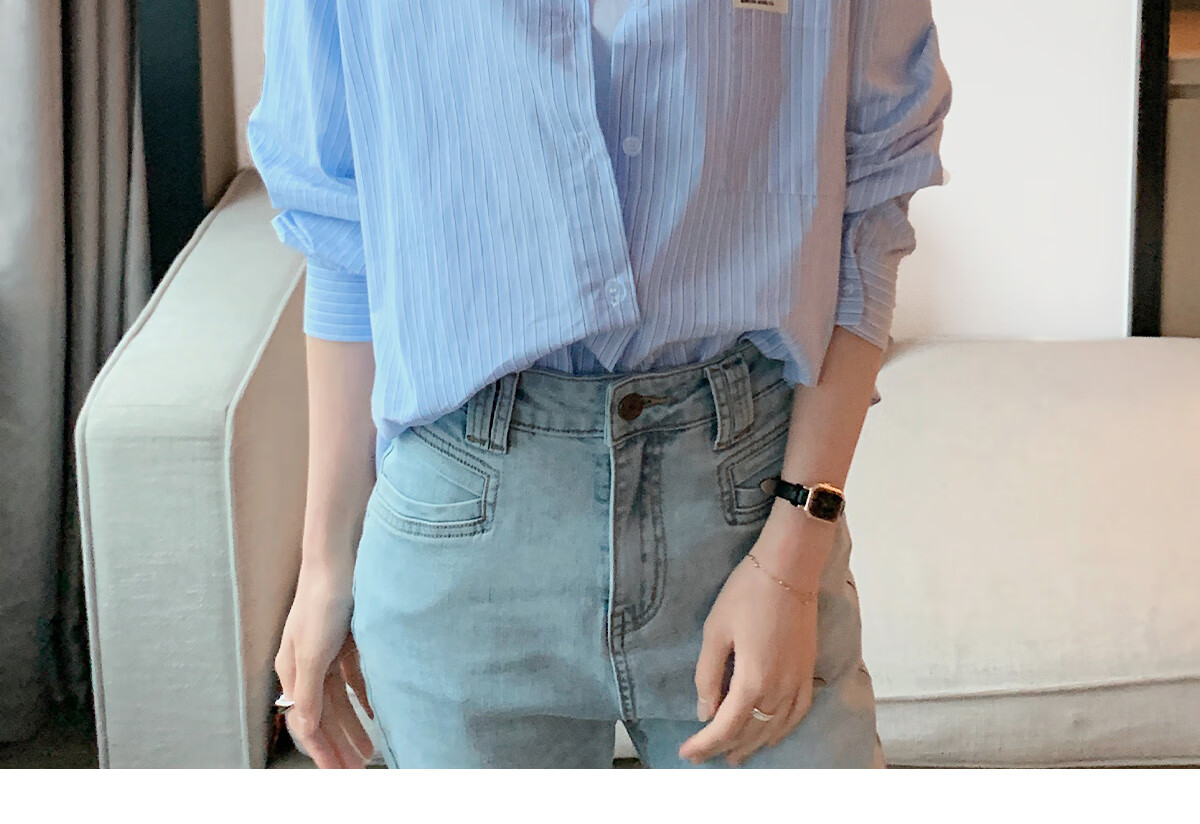 Halo Queen long-sleeved shirt women's niche design striped commuter shirt temperament versatile top H13KC2378