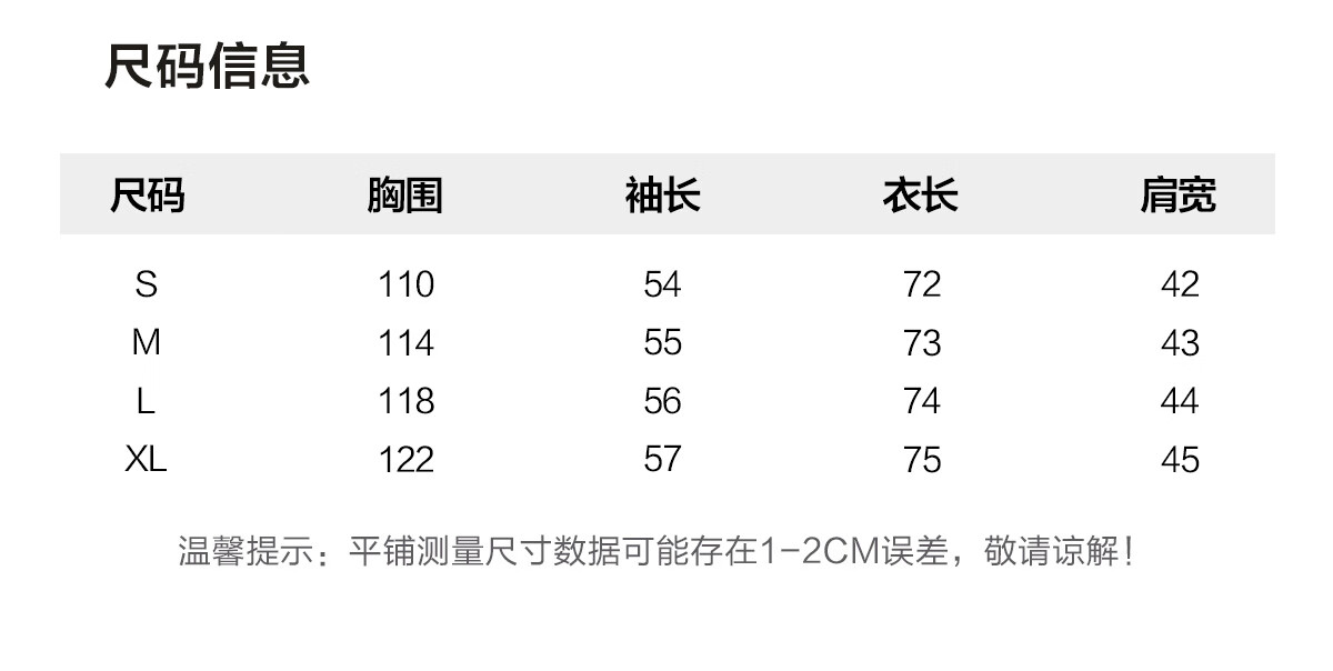 Size (cm) 42 44 46 48 50