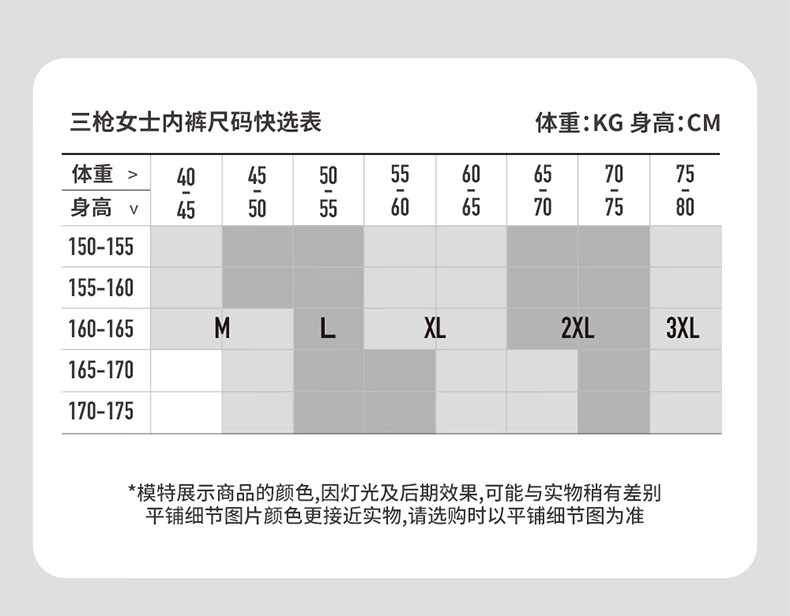 China (cm) 160-165/84-86 165-170 / 88-90 167-172 / 92-96 168-173 / 98-102 170-176 / 106-110