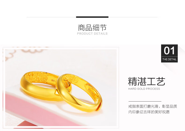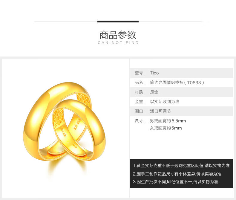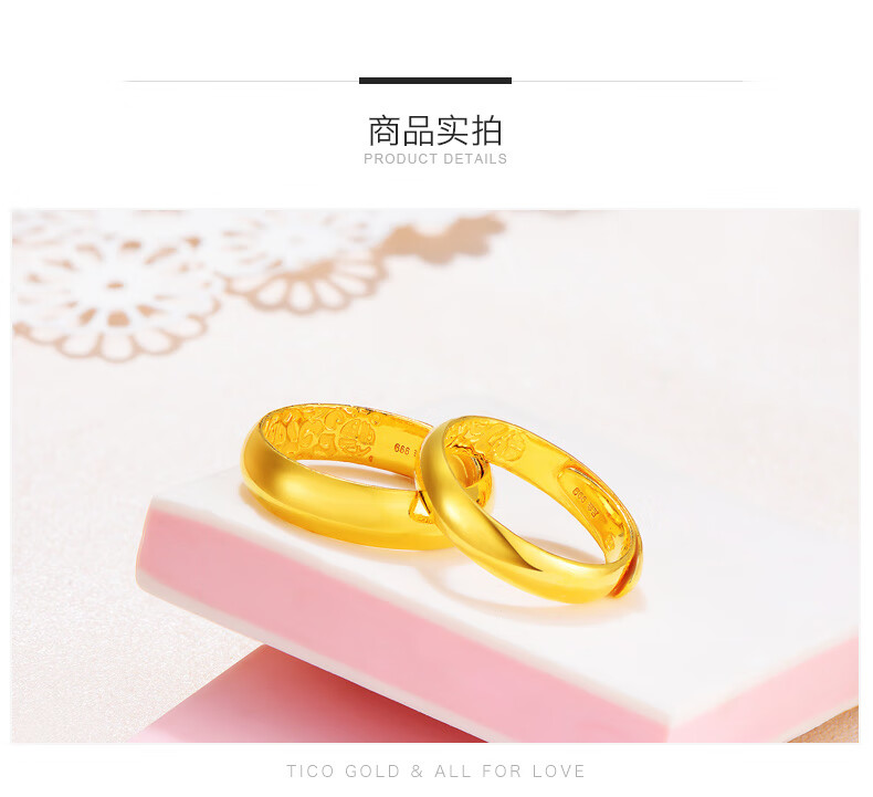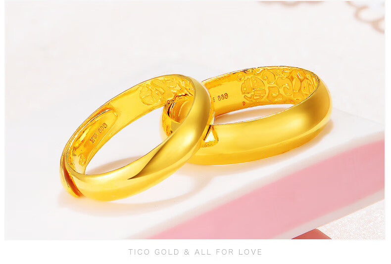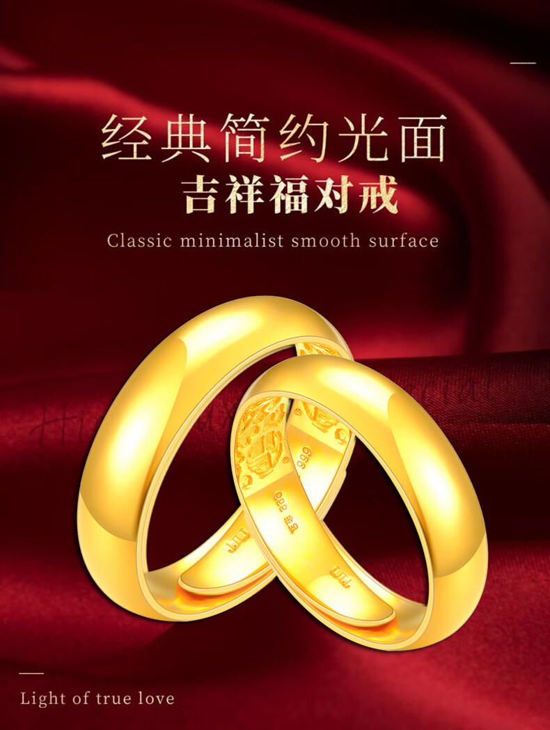 Tico Auspicious Blessing Pure Gold 999.9 Solid Gold Ring Couple Style Ring Living Ring Engagement Birthday Gift