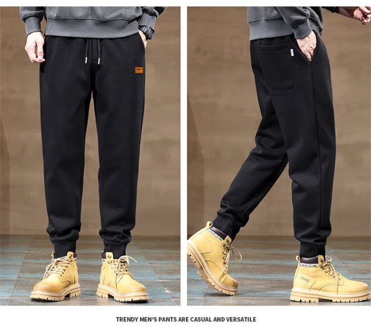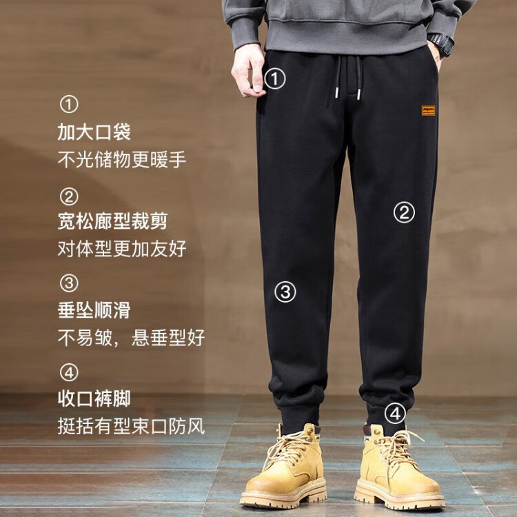 JEEP SPIRIT sweatpants men's spring and autumn leggings pants men's loose casual pants men's outdoor comfortable running trousers black 2XL
