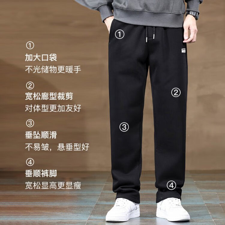 JEEP SPIRIT sweatpants men's spring and autumn straight pants men's loose casual pants men's outdoor comfortable running trousers black XL