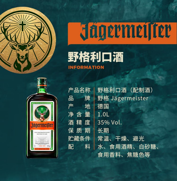 Jägermeister's popular products, imported from Germany, antler liqueur, liqueur blend 1L
