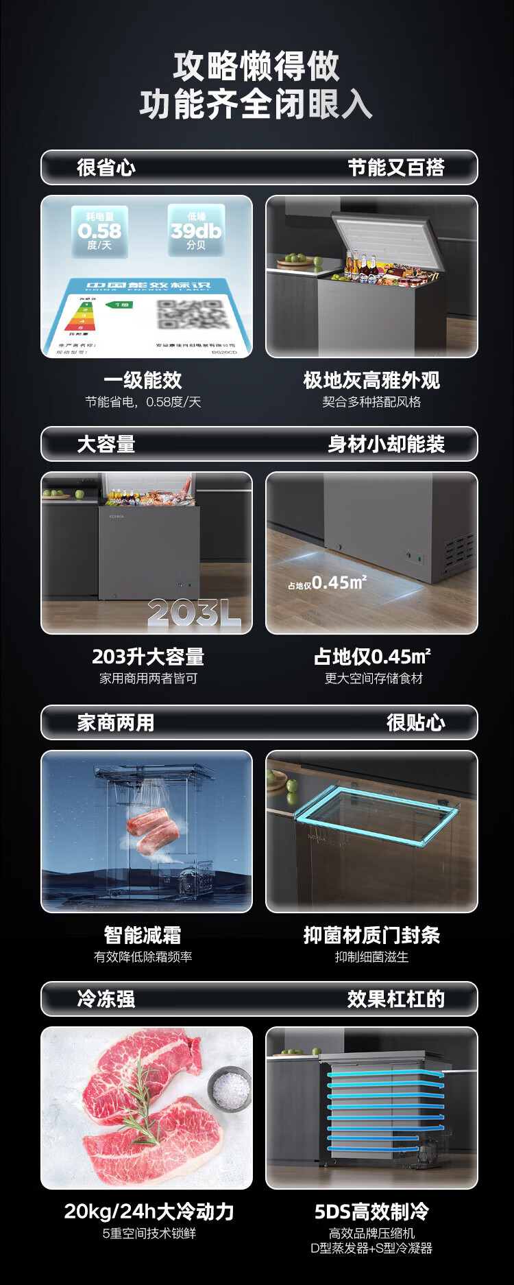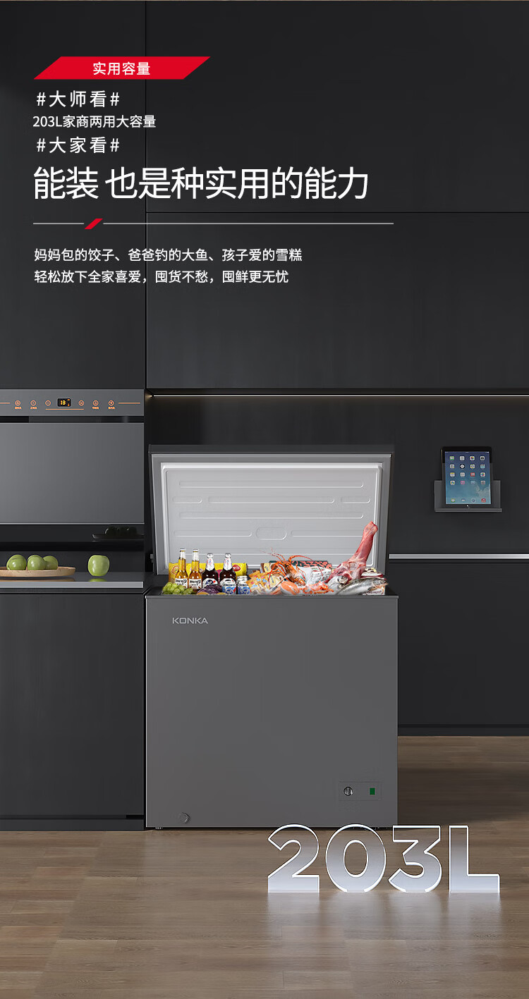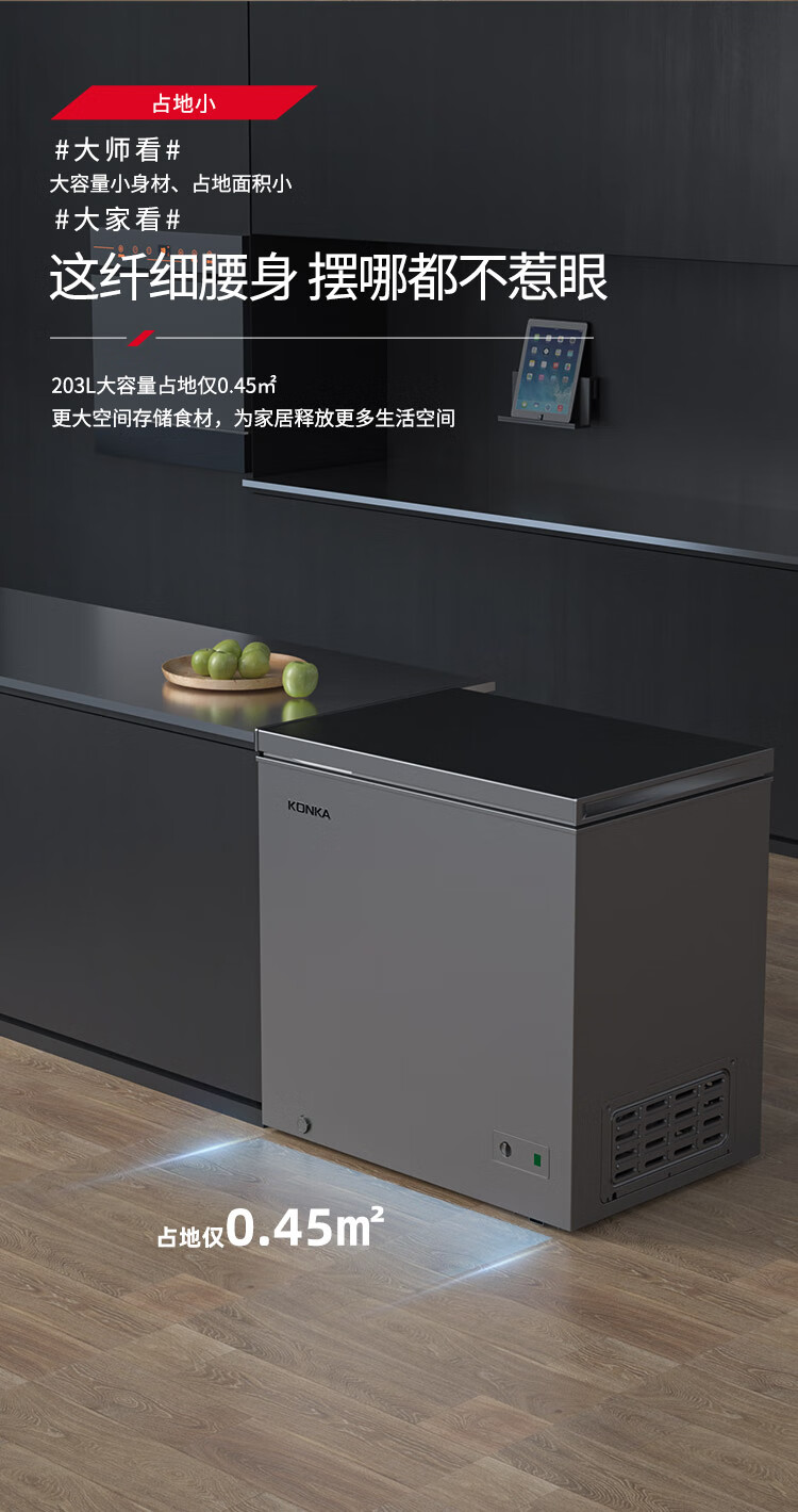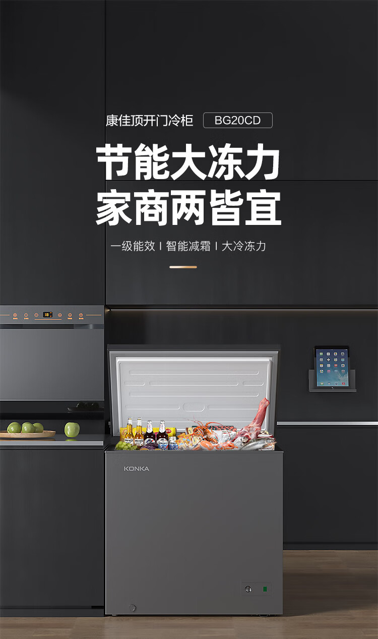 KONKA 203 Upgraded Level 1 Energy Efficiency Low Frost Small Freezer Household Commercial Refrigerator Freezer Small Rental Small Refrigerator Freezer BG20CD National Subsidy