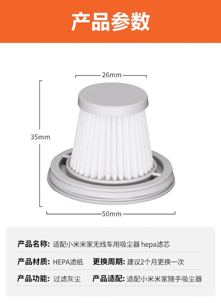 Nail Air Suitable for Mijia Xiaomi Handy Vacuum Cleaner HEPA Filter Element (5 Pack) Filter Household Handheld Car Wireless Vacuum Cleaner Accessories