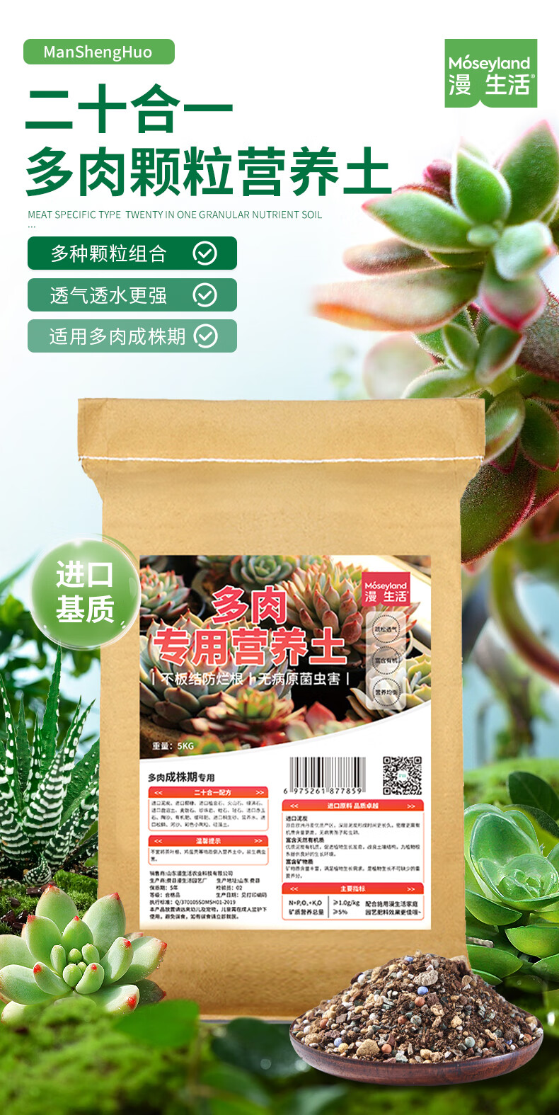 Manlife 5KG succulent soil granular soil planting soil succulent special soil nutrient soil plant adult plant 50% particles + 50% soil