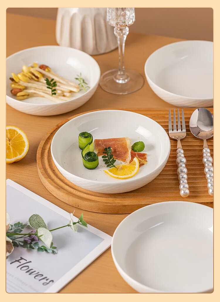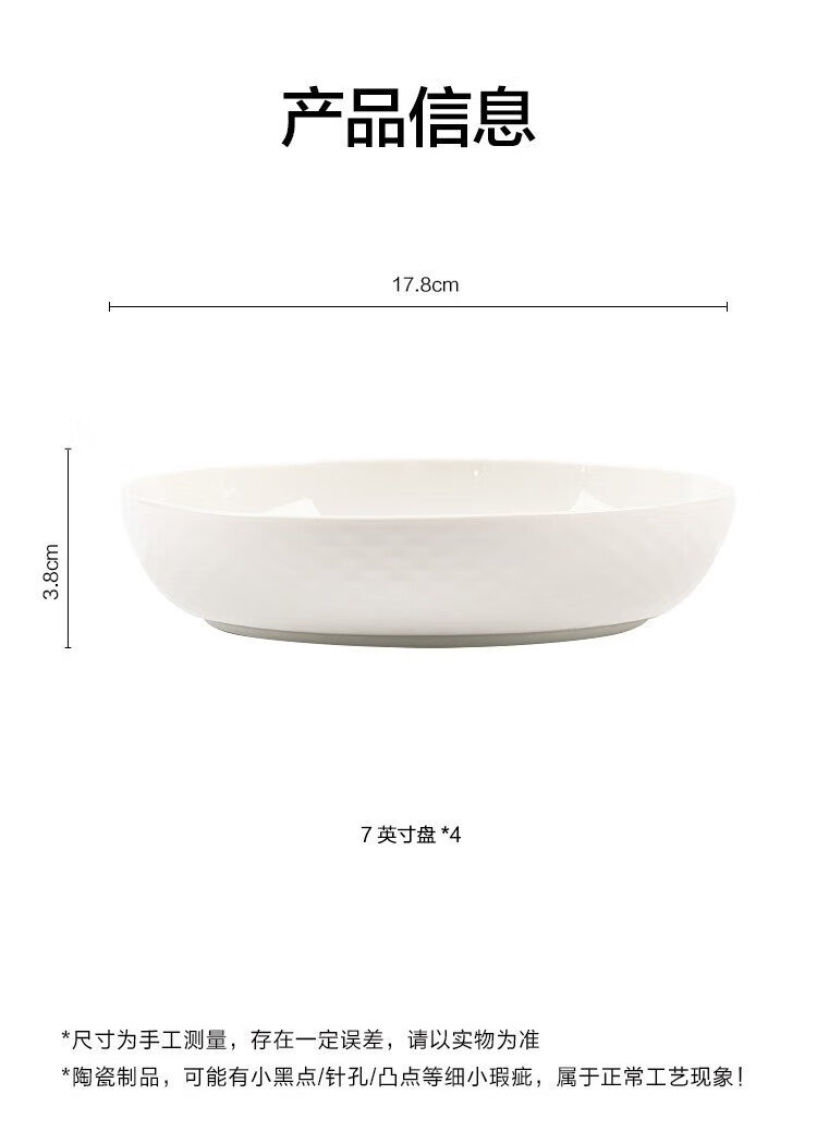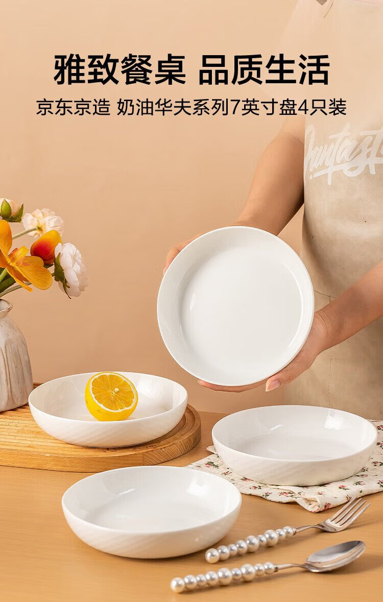 Kyoto Tokyo-made ceramic plate, dish plate, home dining plate, rice plate, deep dish, cream waffle 7-inch plate, 4 pack