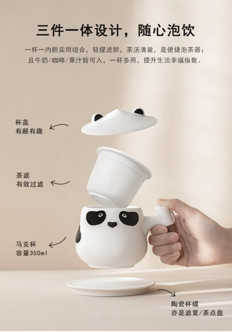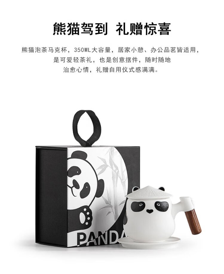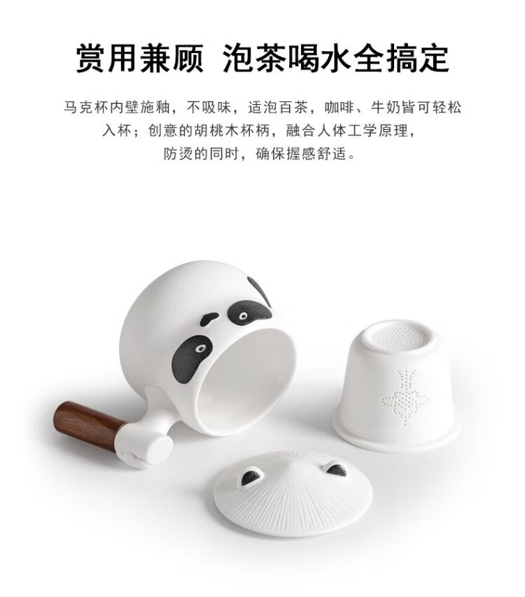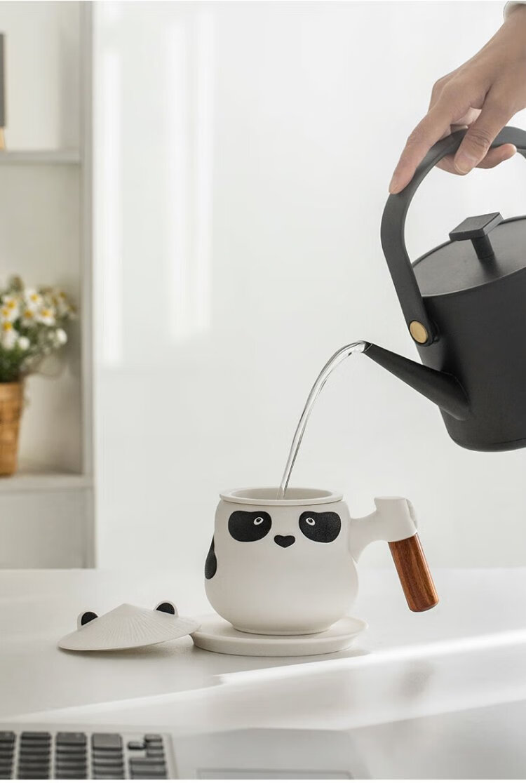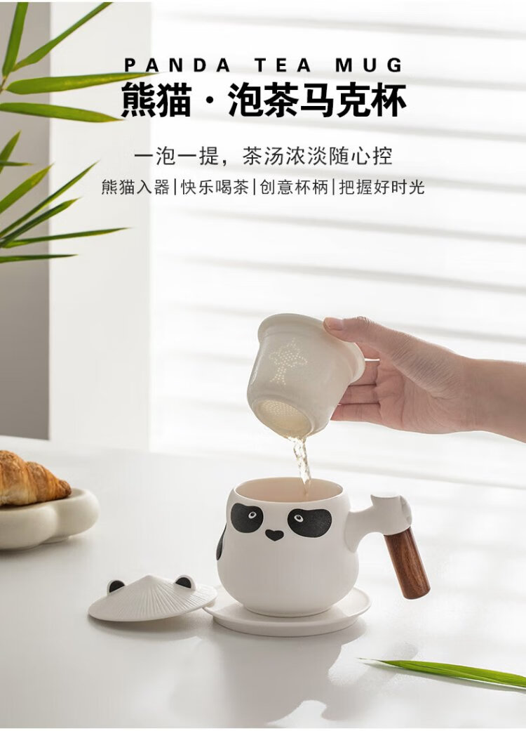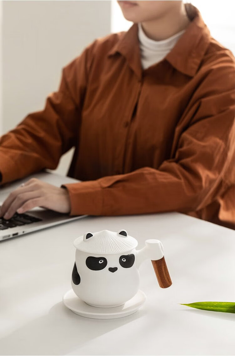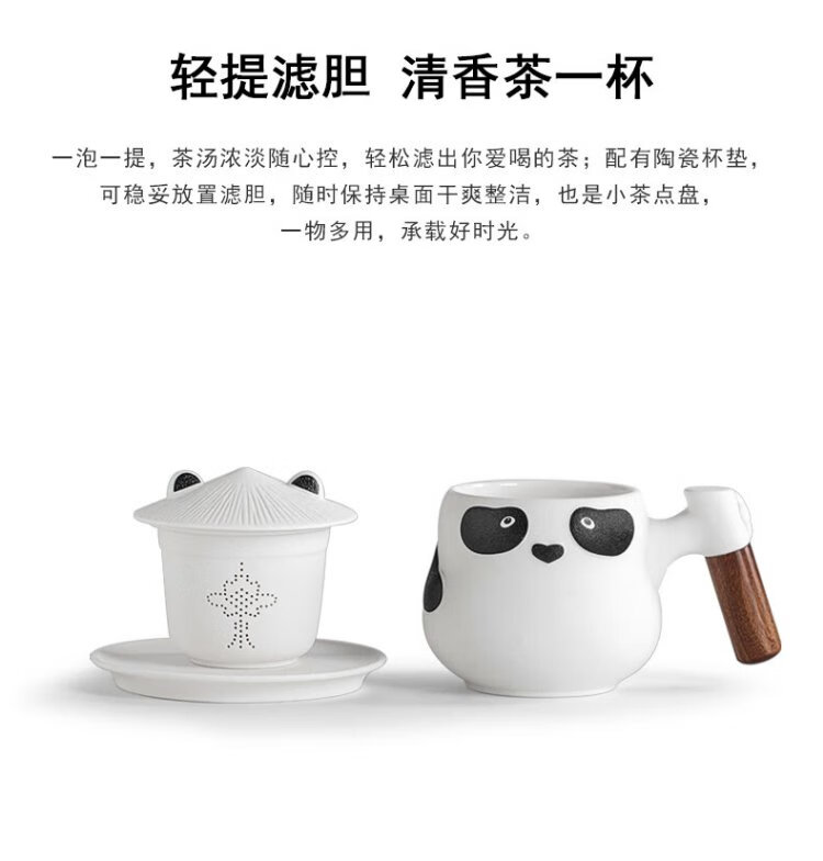 Thirty-year-old Panda tea mug with lid for men and women office filtered water cup creative ceramic tea water separation cup