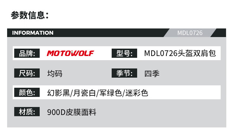 MOTOWOLF Rider Bag Men's Motorcycle Riding Backpack Motorcycle Backpack Waterproof Large Capacity Can Hold Full-face Helmet Motorcycle Helmet Bag