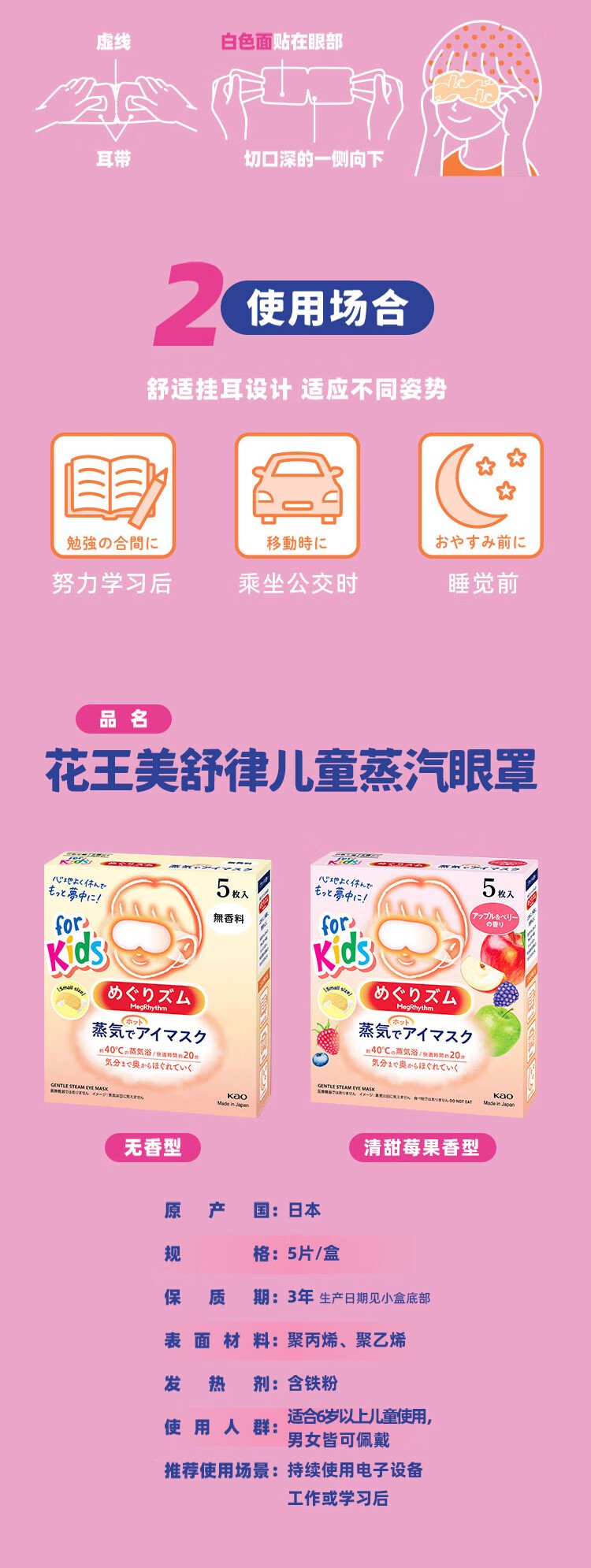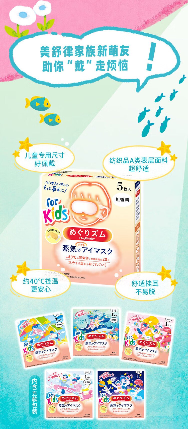 Kao (KAO) Mesolu children's steam eye mask (unscented) 5-pack eye protection patch sleep patch imported