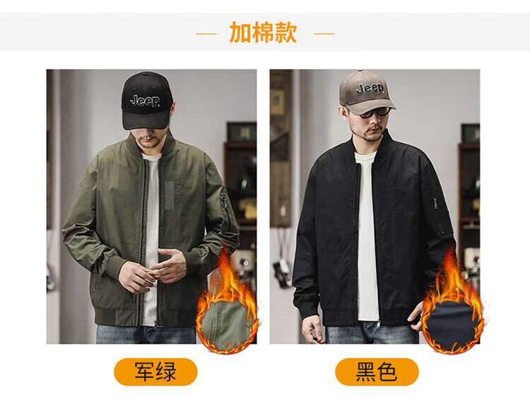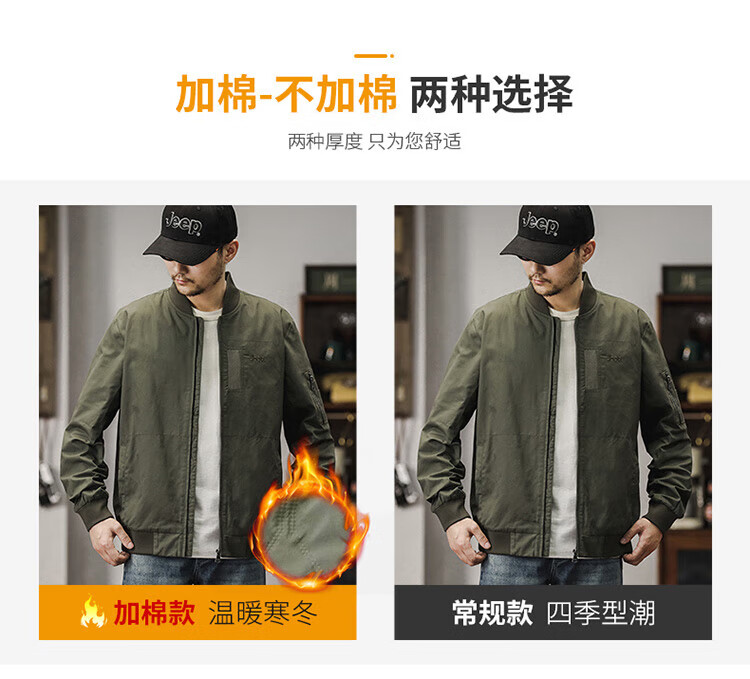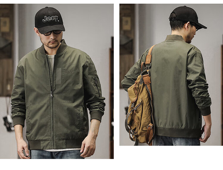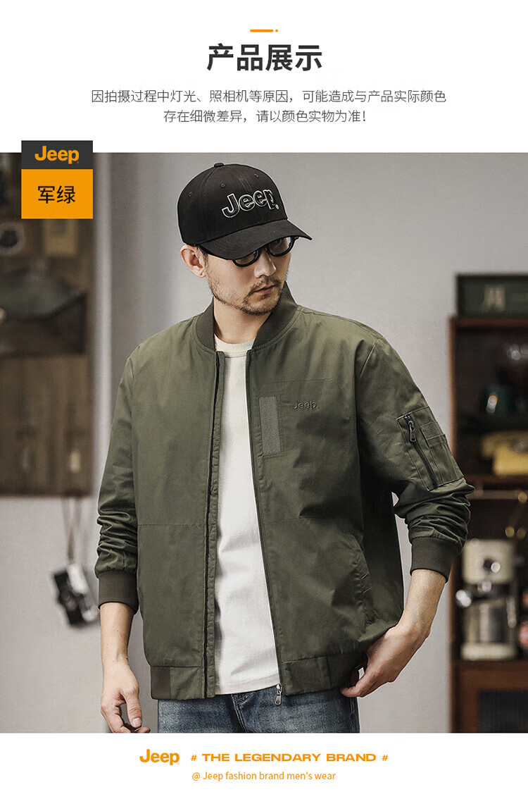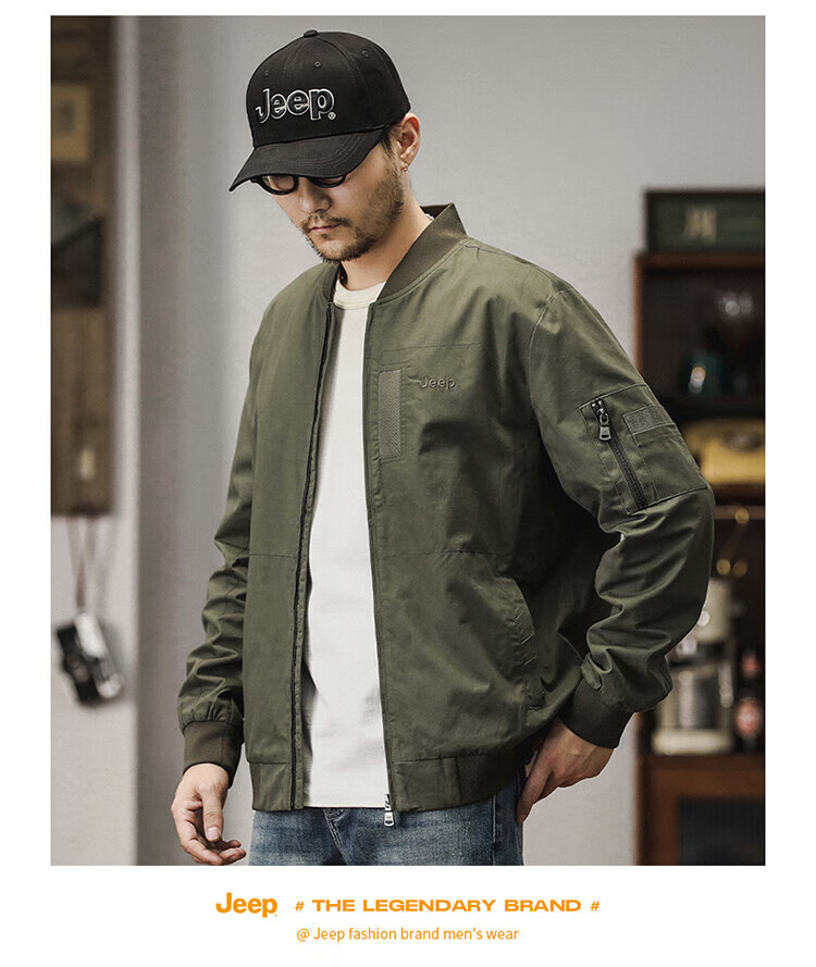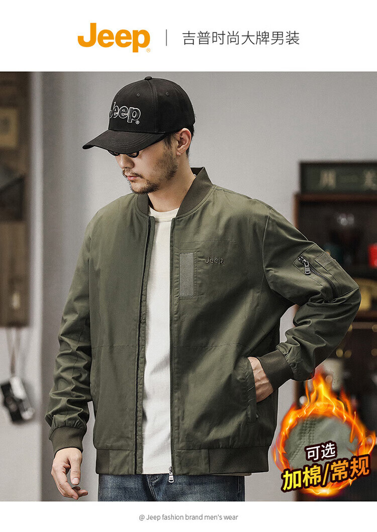 Jeep (JEEP) Jacket Men's Jacket Autumn and Winter Workwear Baseball Collar Casual Trendy Clothes Men's Military Green XL