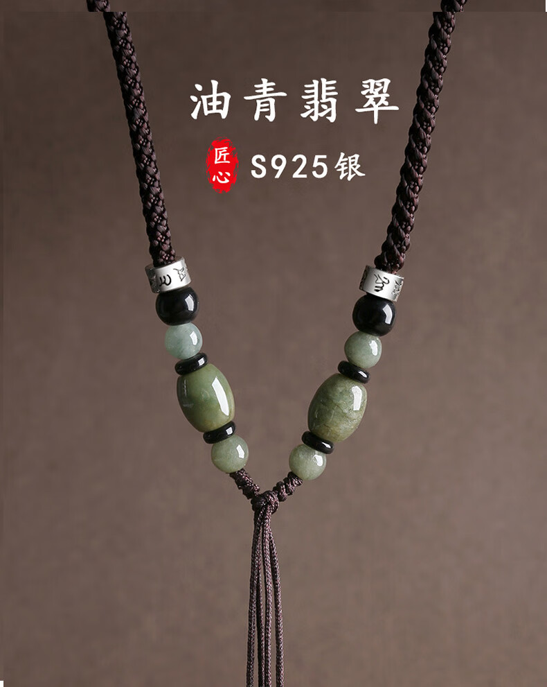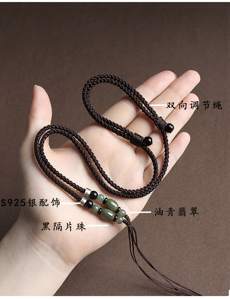 Crystal 925 silver jade lanyard pendant, halter neck necklace, men's and women's pendant rope, high-end jade pendant, Buddha brand safety buckle accessories