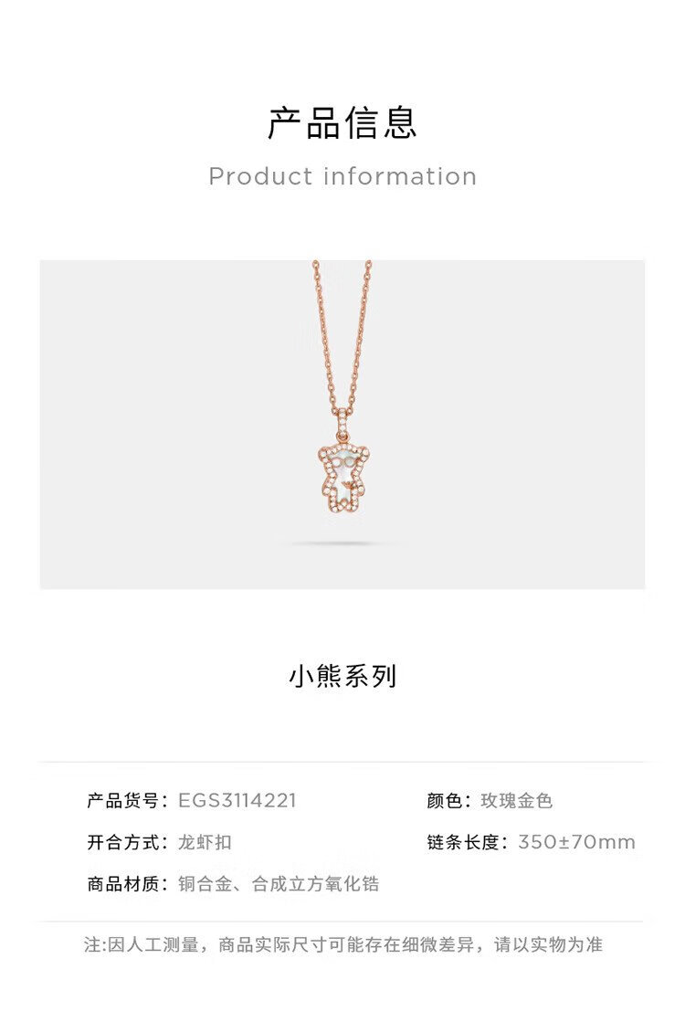 EMPORIO ARMANI Armani women's necklace bear mother-of-pearl necklace birthday gift for girlfriend EGS3114221