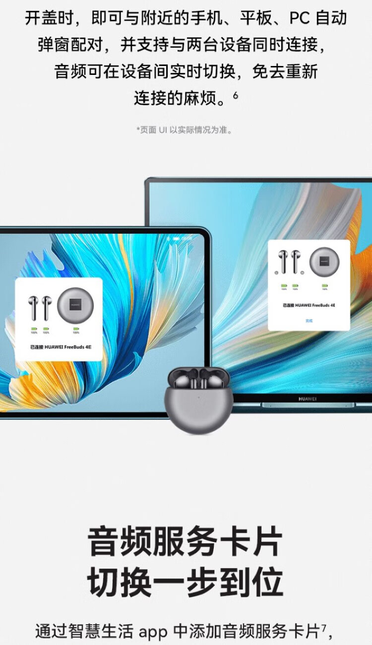 Huawei FreeBuds 4E True Wireless Bluetooth Headphones Half-ear Comfortable Wear/Game and Sports Music Headphones/High-Resolution Sound Quality Frost Silver
