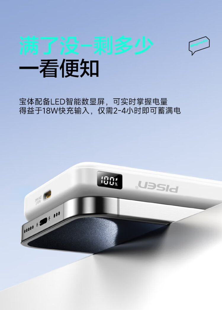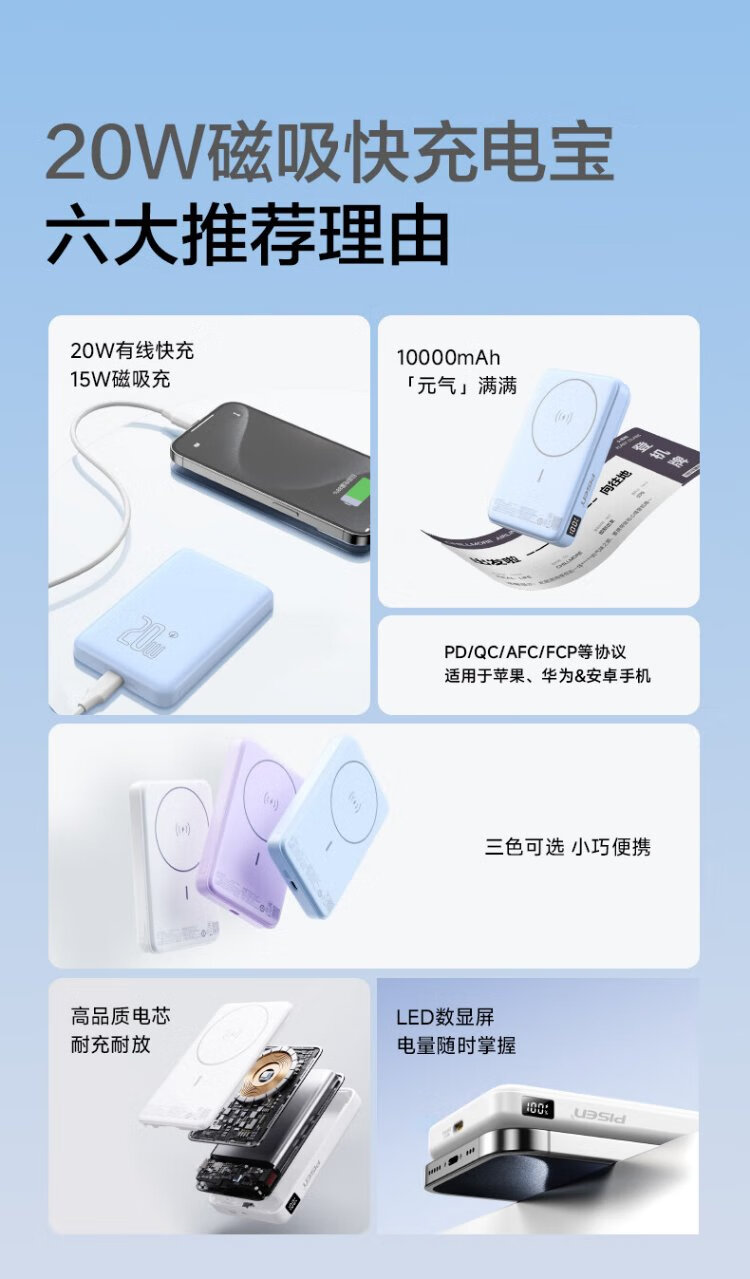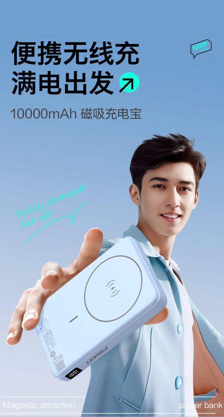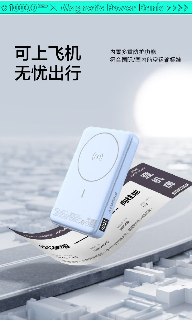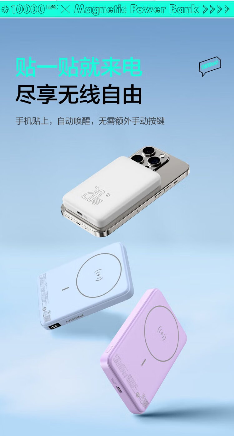 Pinsheng 3C certified power bank magnetic 10000 mAh large capacity can be used on airplanes MagSafe wireless charging mobile power supply suitable for Apple 17promax/Air Huawei white