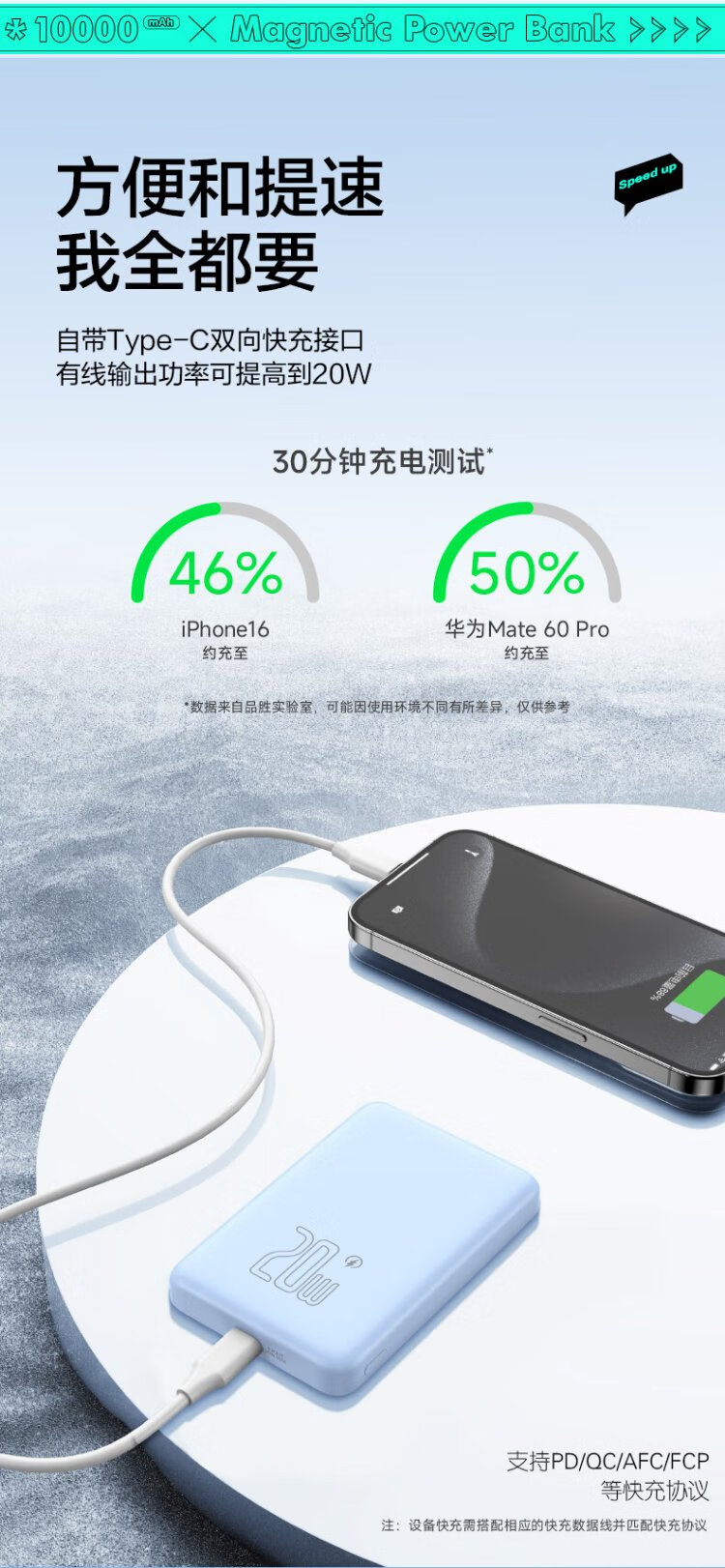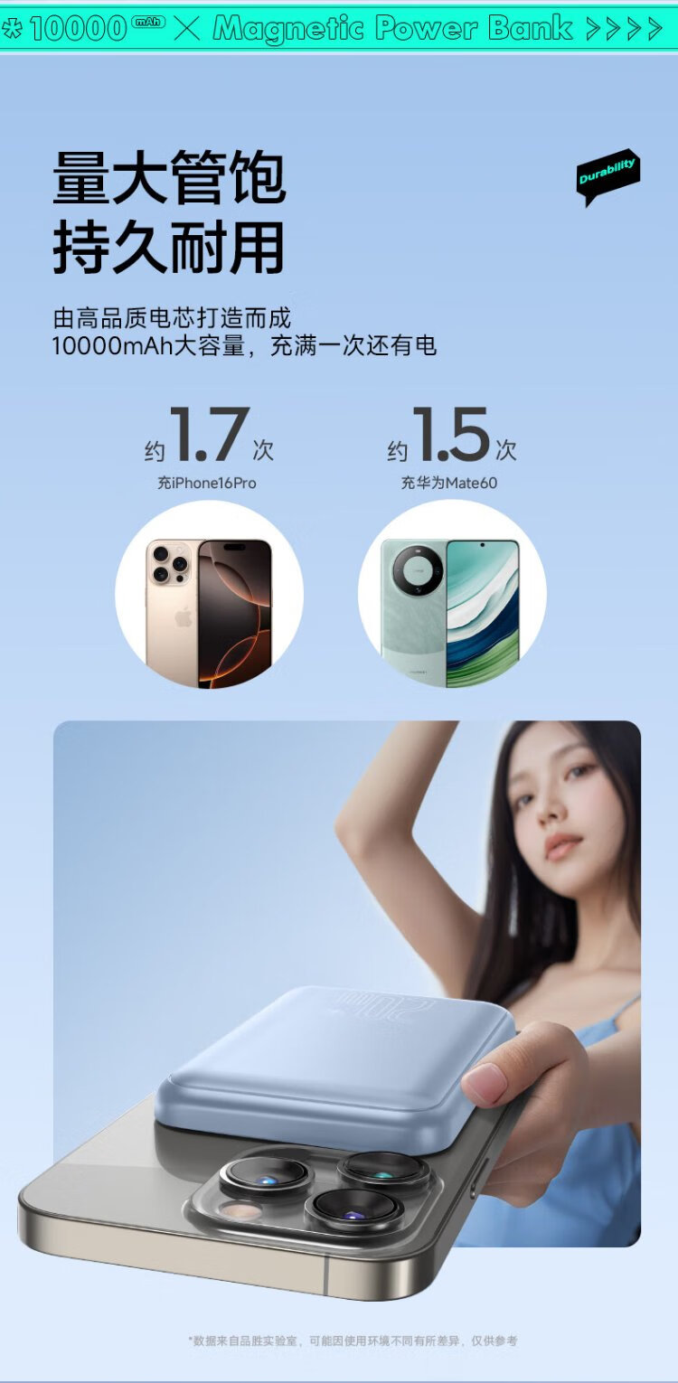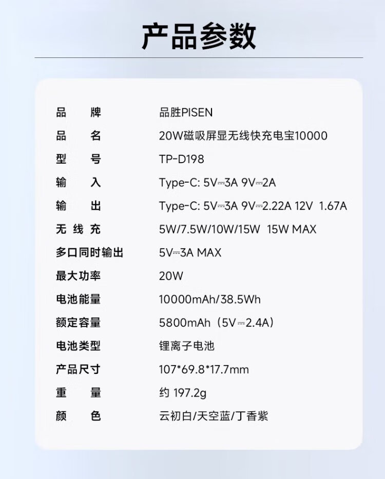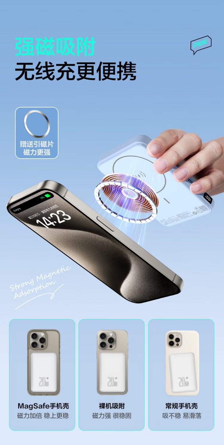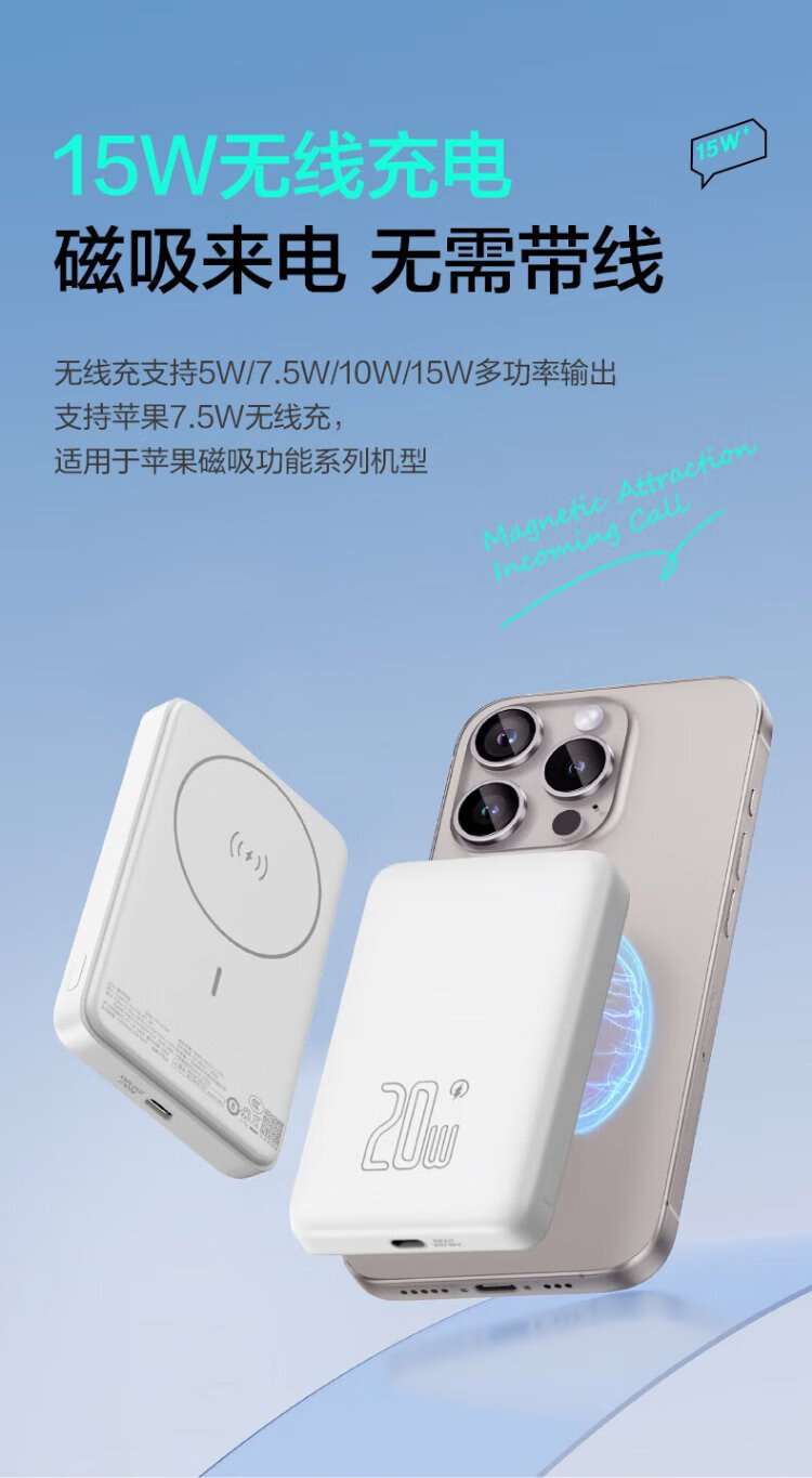 Pinsheng 3C certified power bank magnetic 10000 mAh large capacity can be used on airplanes MagSafe wireless charging mobile power supply suitable for Apple 17promax/Air Huawei white