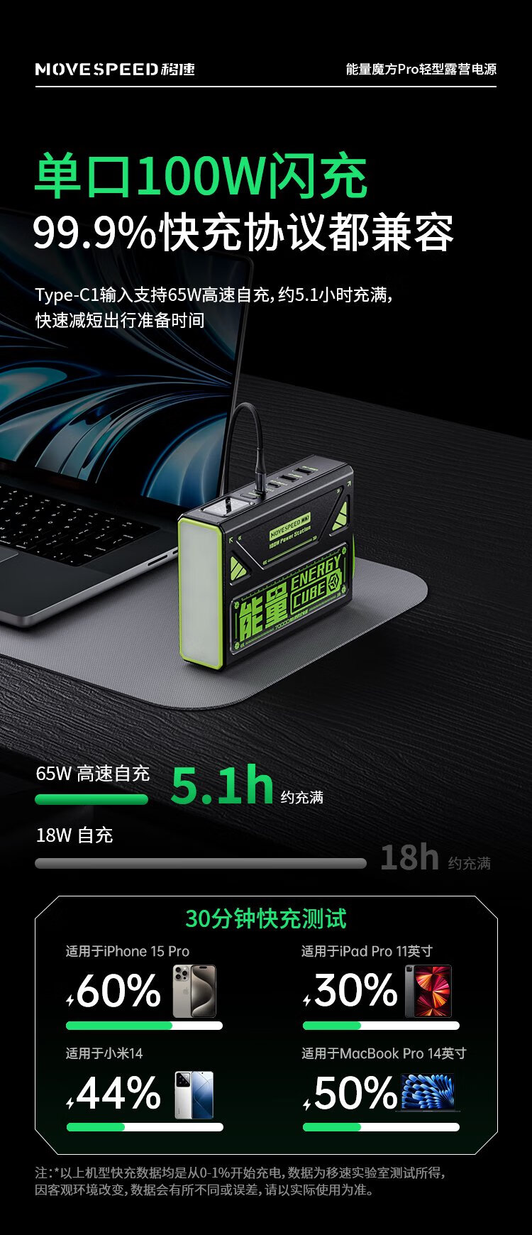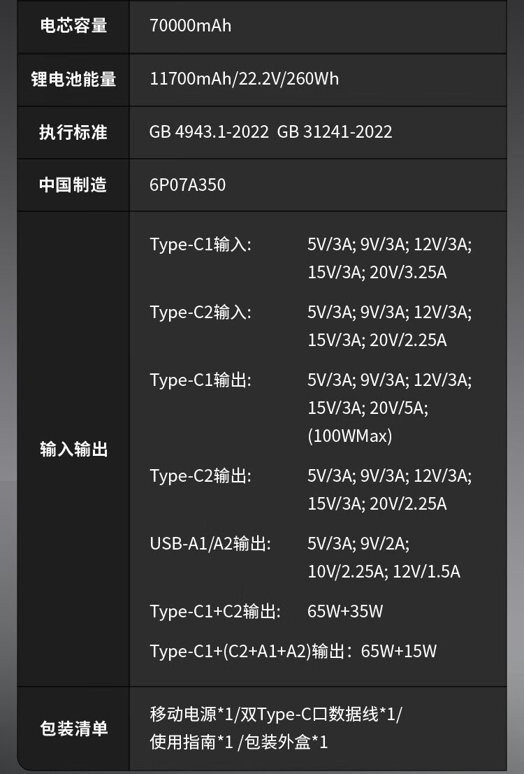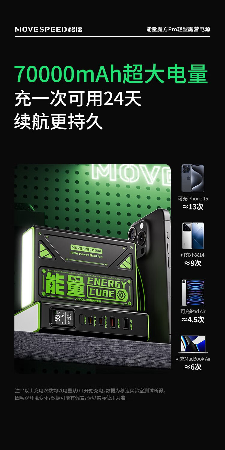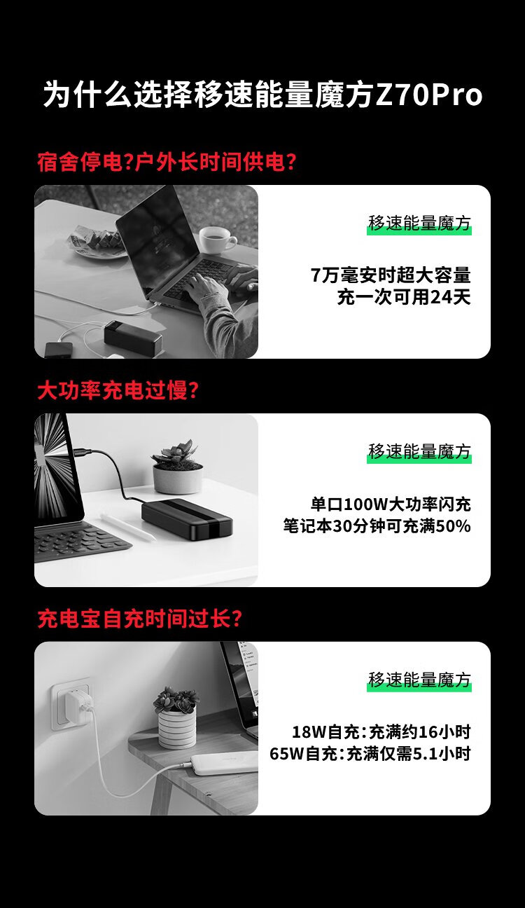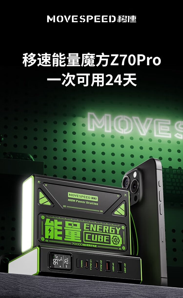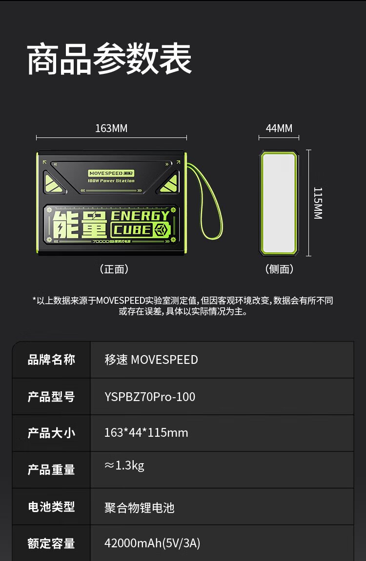 Mobile speed 3C certification laptop fast charging power bank 100W high power 70,000 mAh ultra-large capacity energy cube outdoor mobile power supply energy storage with LED light