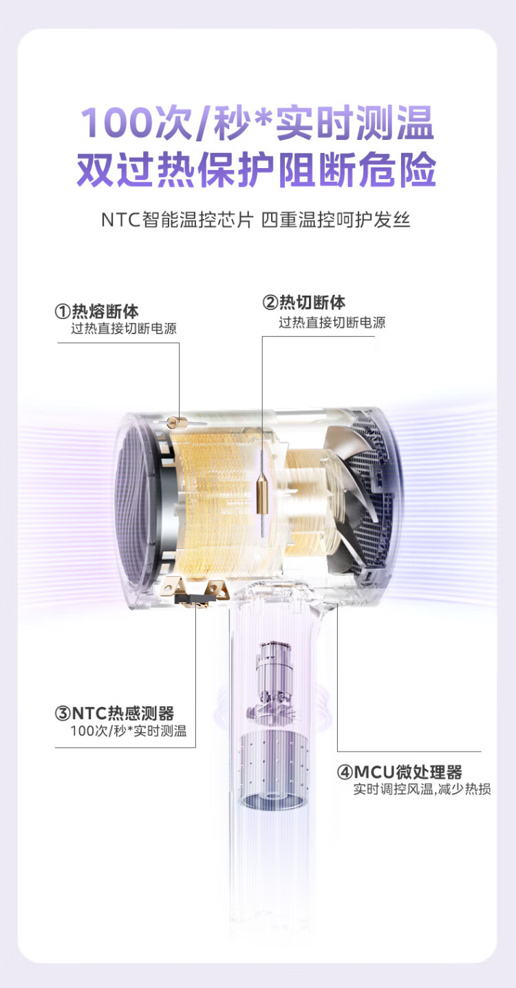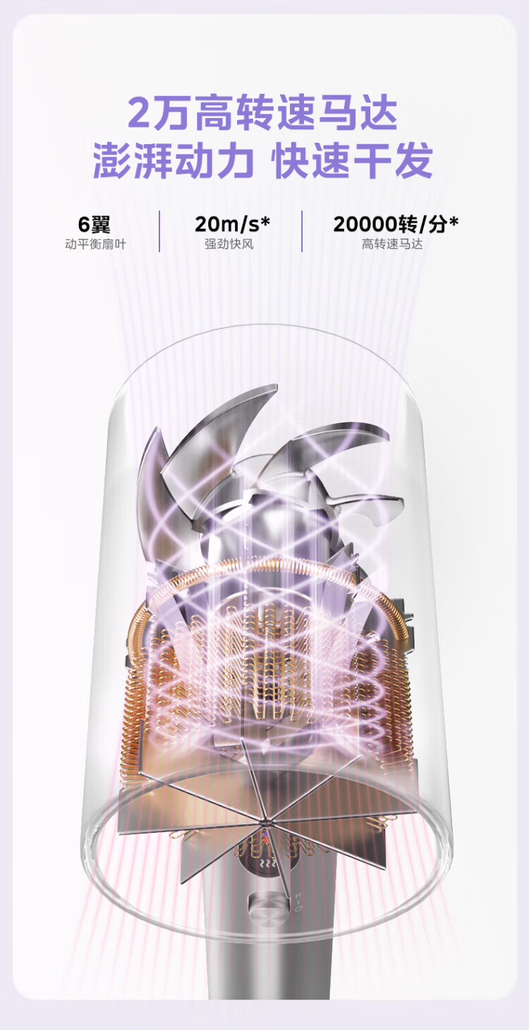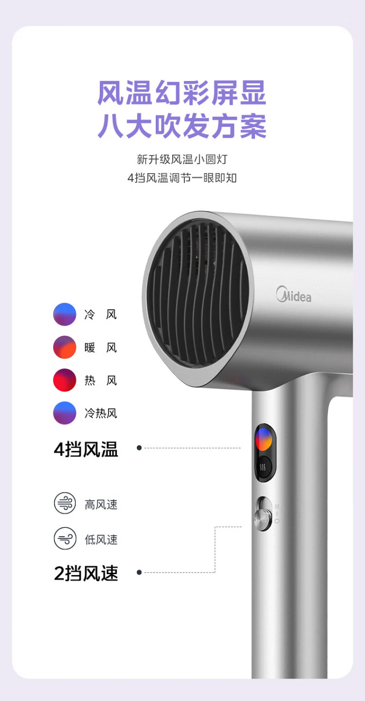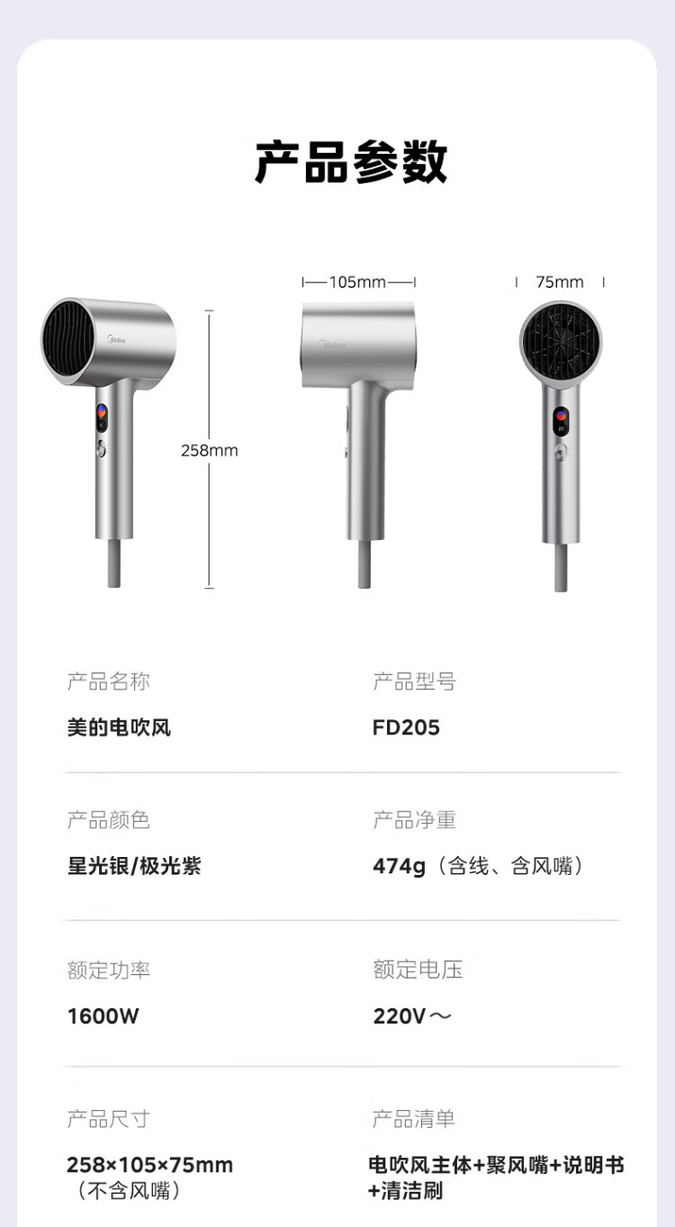 Midea 150 million negative ion hair dryer, high-power hair care hair dryer, household hair dryer, home appliance national subsidy FD205-Starlight Silver, holiday/birthday gift recommendation