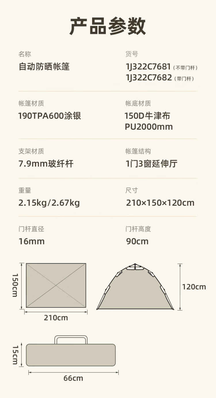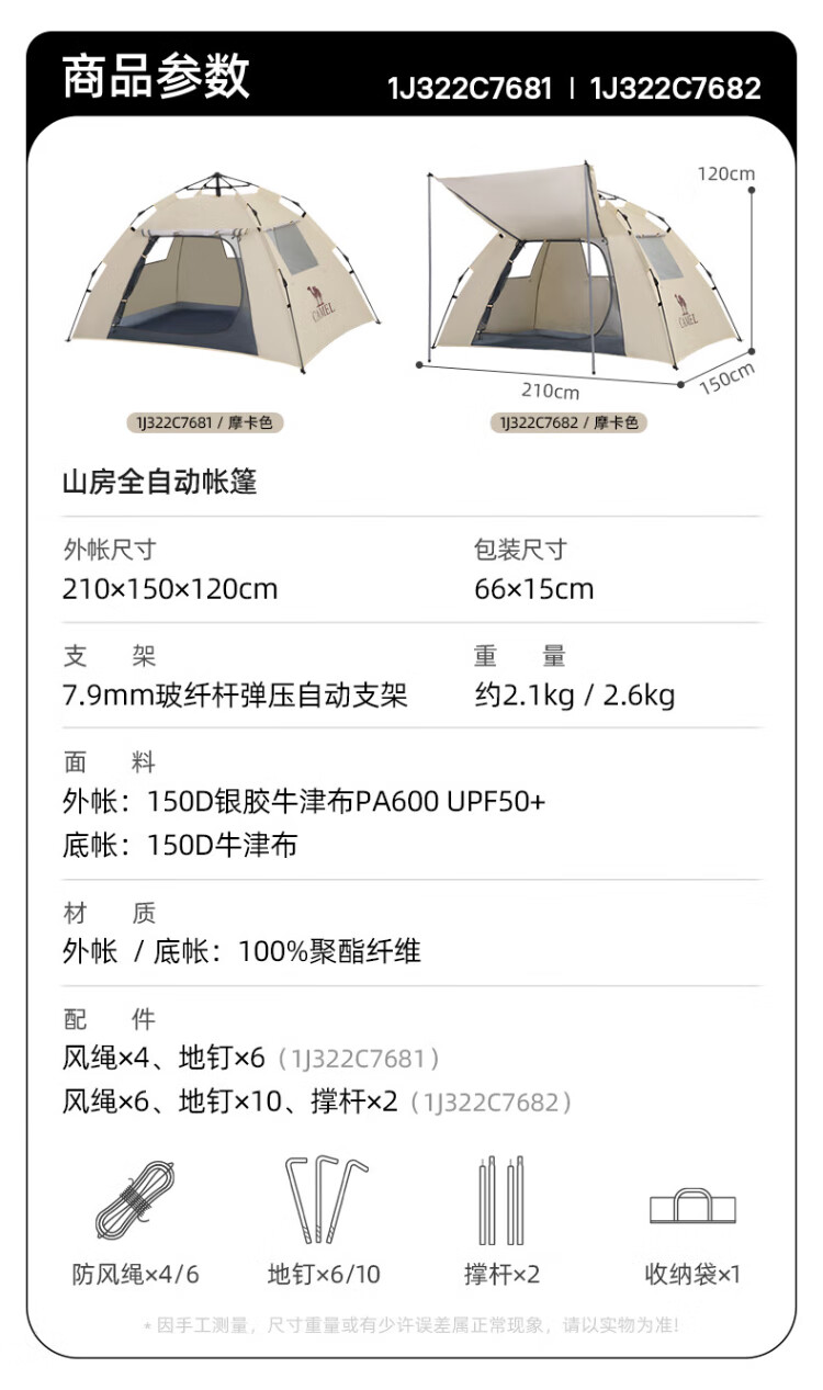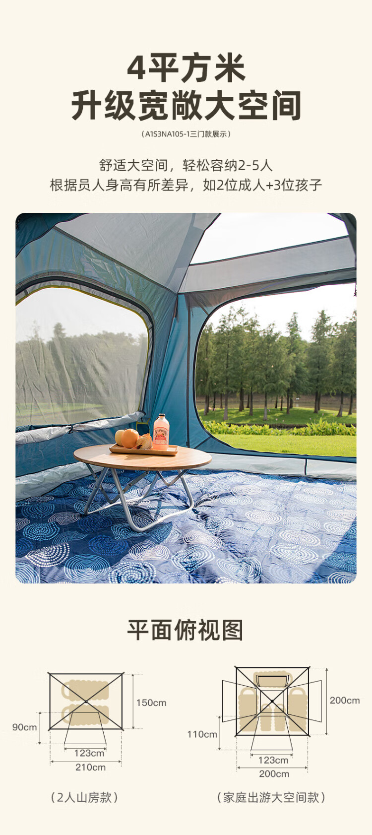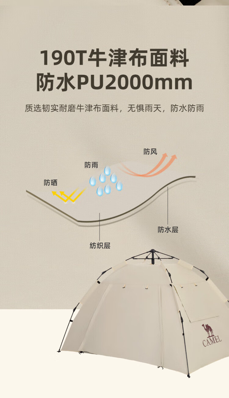 CAMEL Mountain House Tent Outdoor Canopy Portable Folding Automatic Windproof Park Camping Equipment 1J322C7682