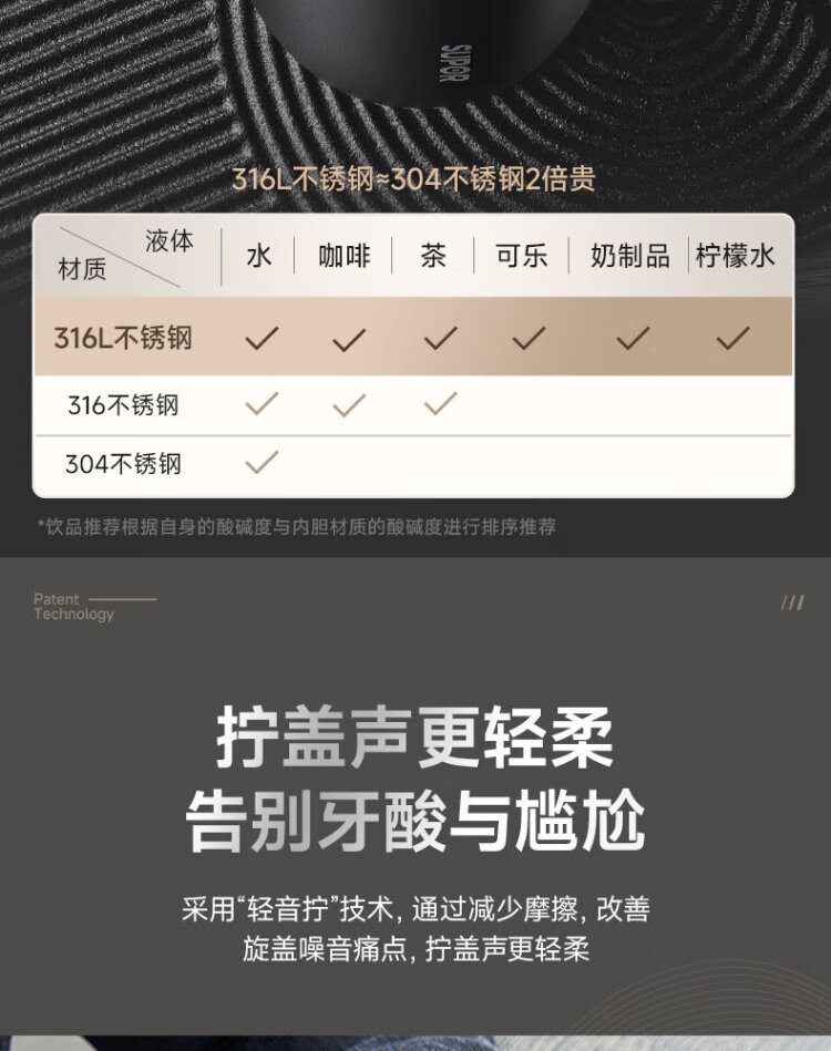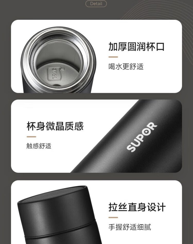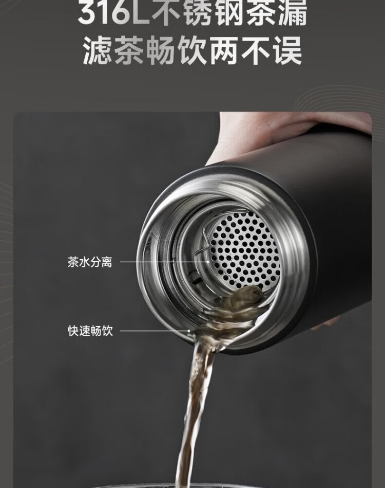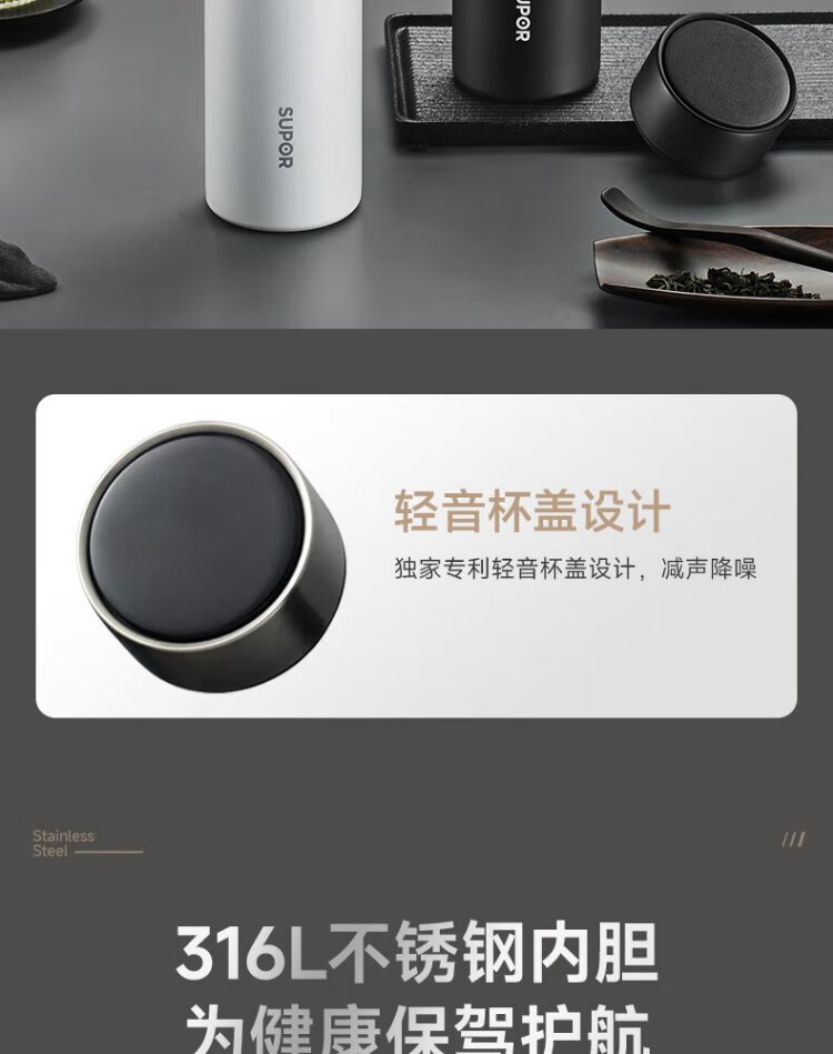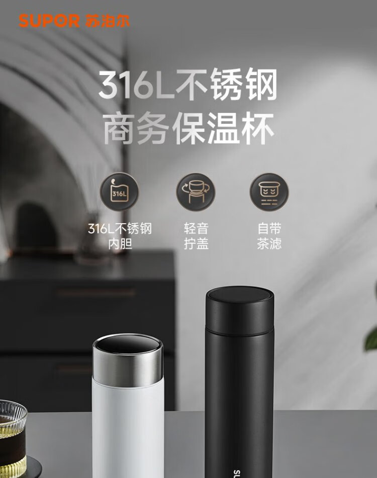 SUPOR thermos cup 316L stainless steel men's and women's water cups tea and water separated men's and women's portable car thermos cups