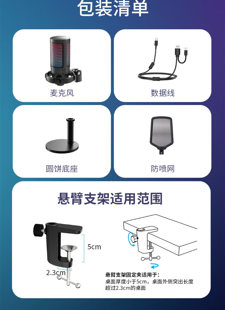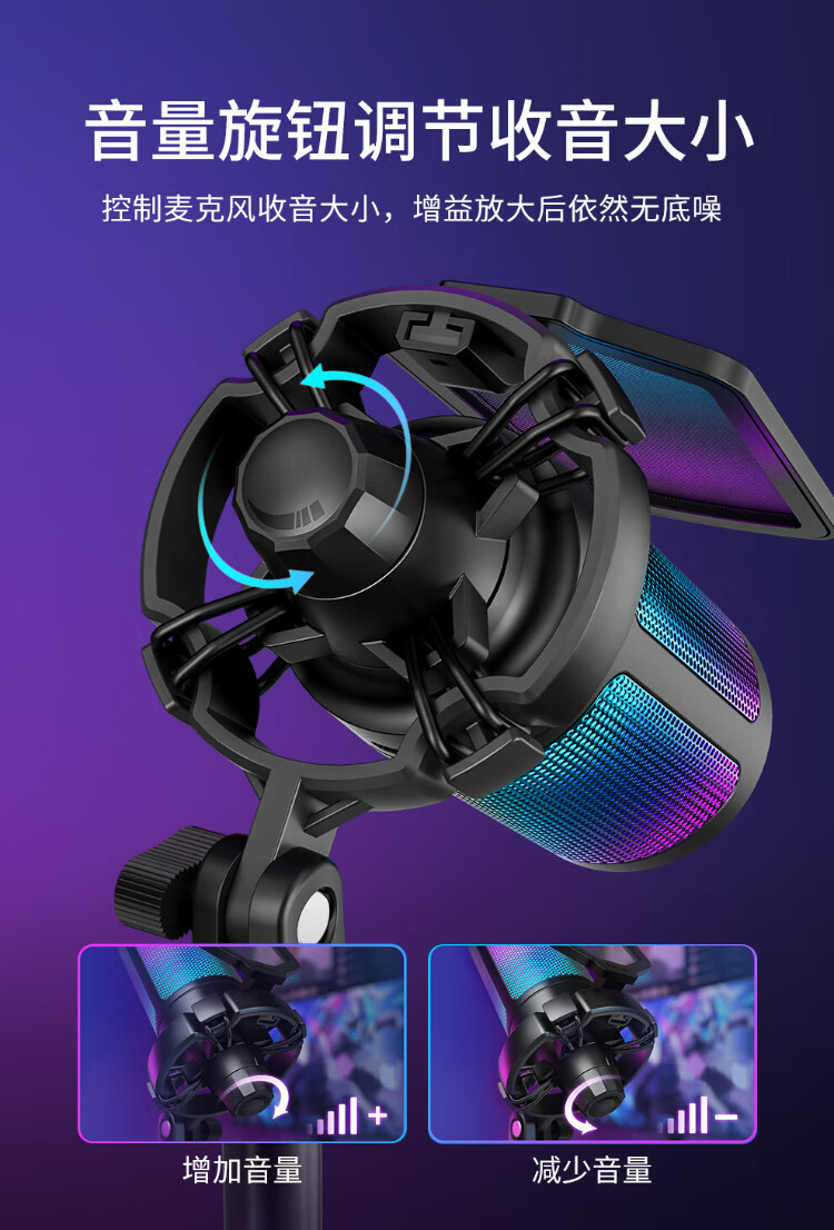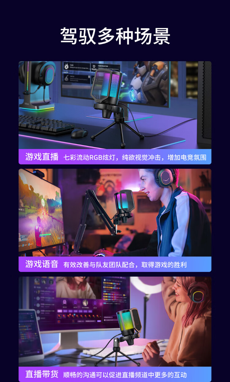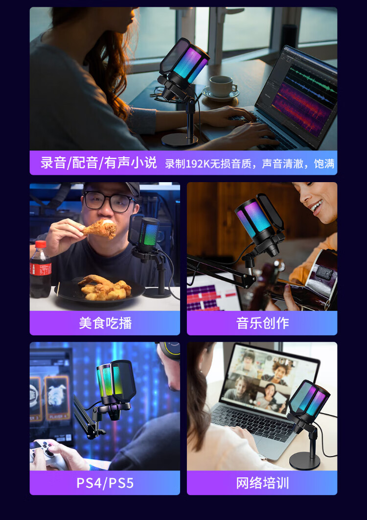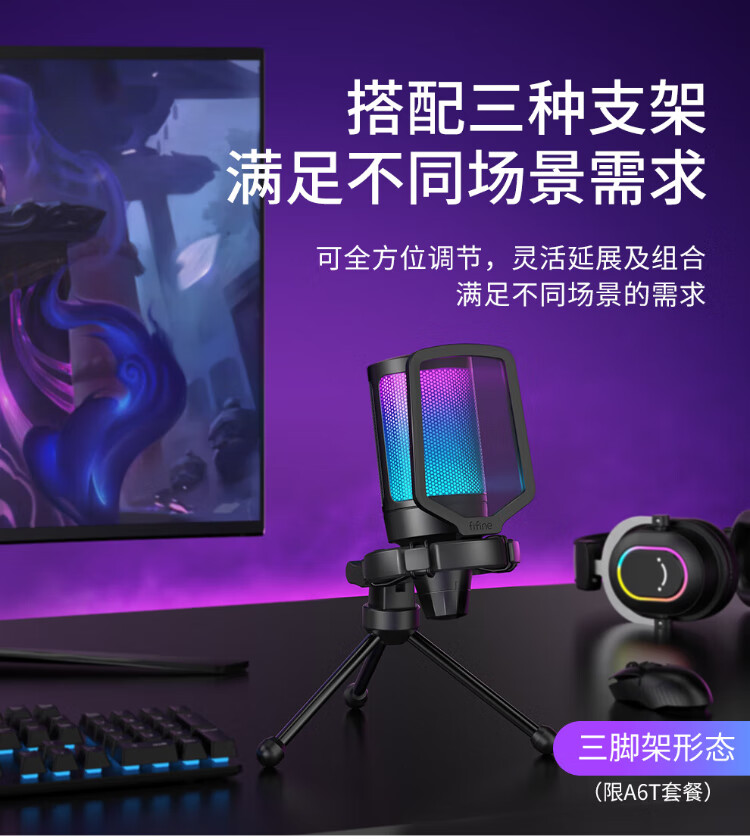 FIFINE microphone computer usb game live recording RGB mobile video noise reduction notebook desktop desktop professional microphone radio A6 pink