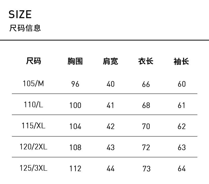 China (cm) 165 / 88-90 170 / 96-98 175 / 108-110 180 / 118-122 185 / 126-130