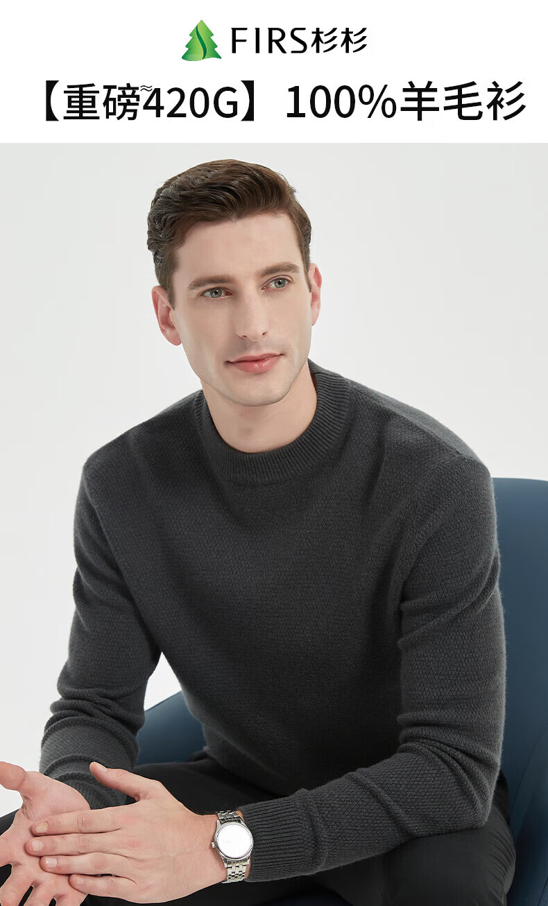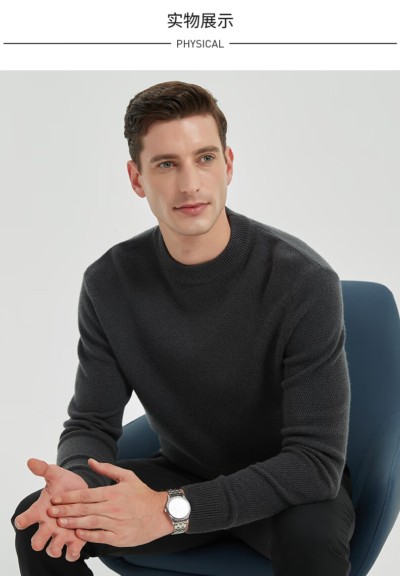 Shanshan 100% cardigan men's thickened winter warm round neck sweater pullover knitted bottoming shirt men's clothing