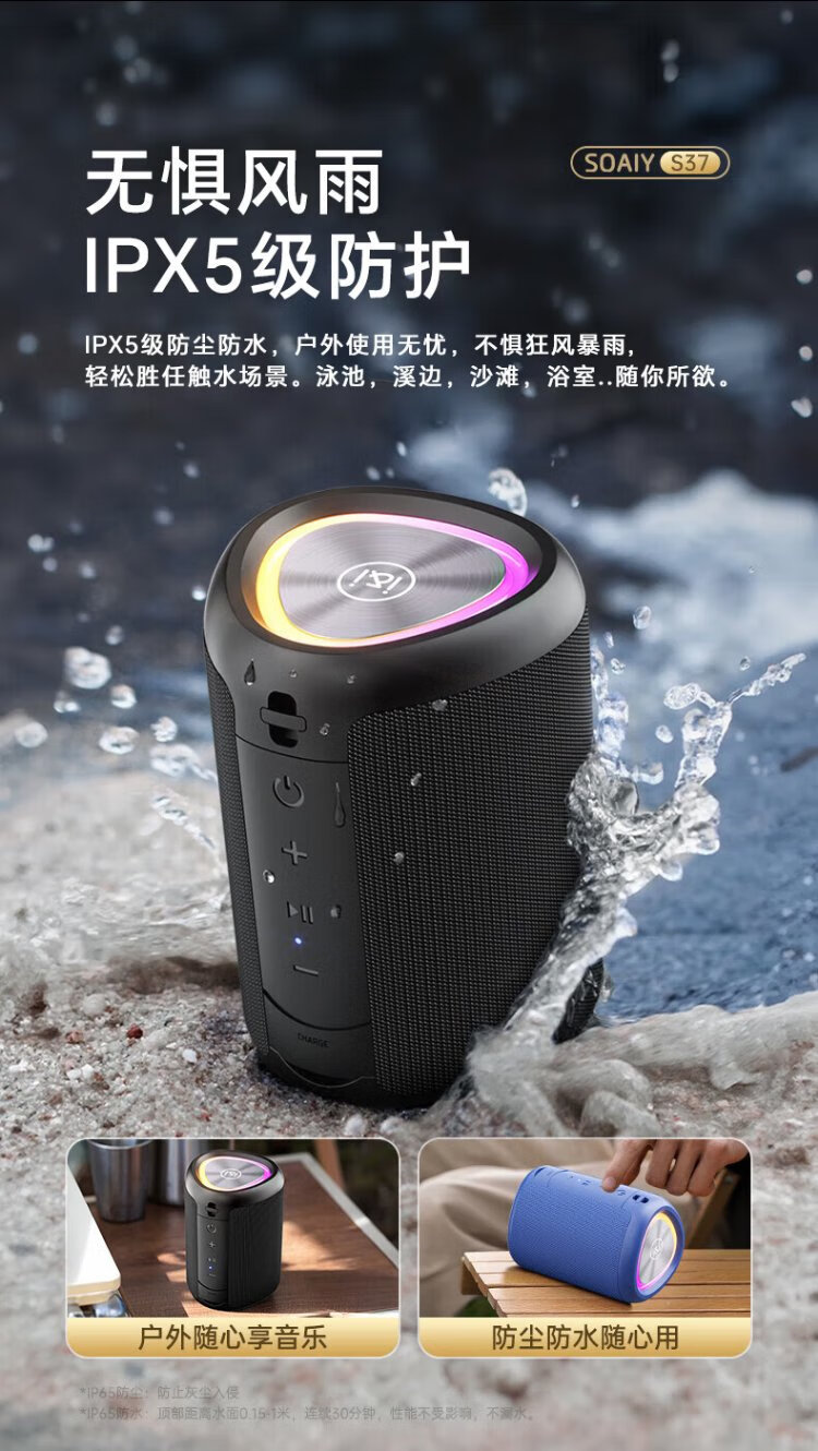 Sony Ericsson (soaiy) S37 small Bluetooth speaker outdoor car mini portable waterproof high-quality collection audio computer speaker subwoofer player gift black