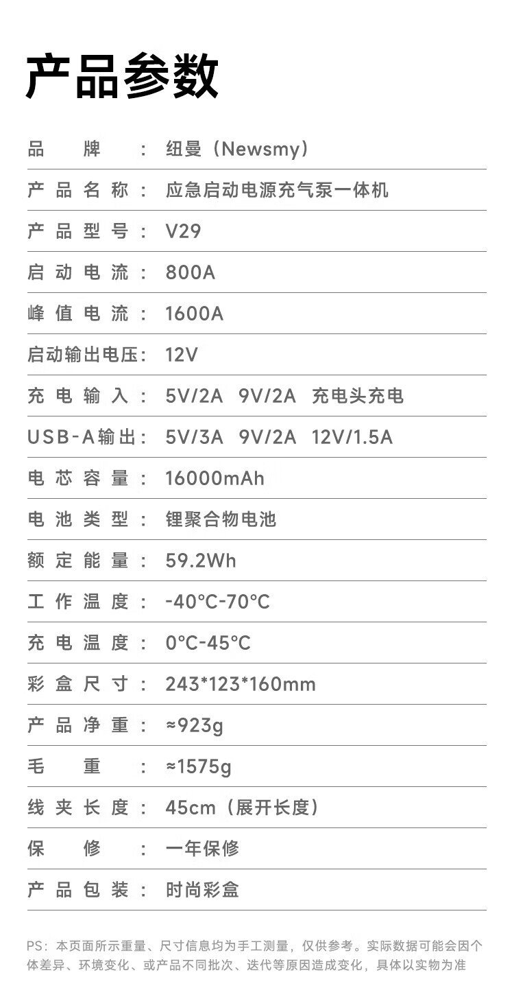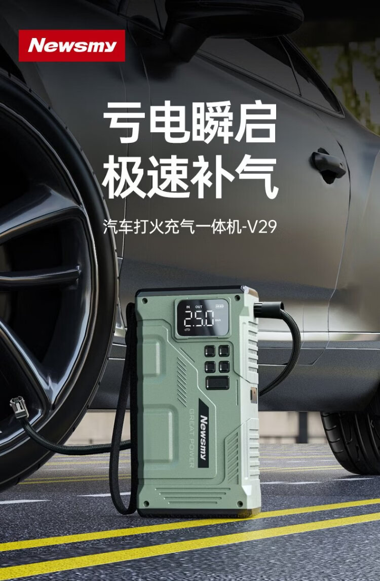 Newman (Newsmy) 3C certified V29 car emergency starting power supply with power bank air pump all-in-one portable outdoor power supply car air pump power bank inflator 16000mAh