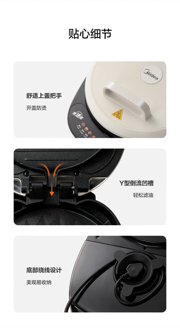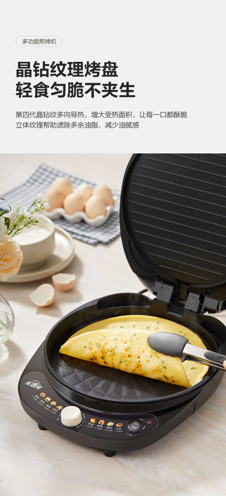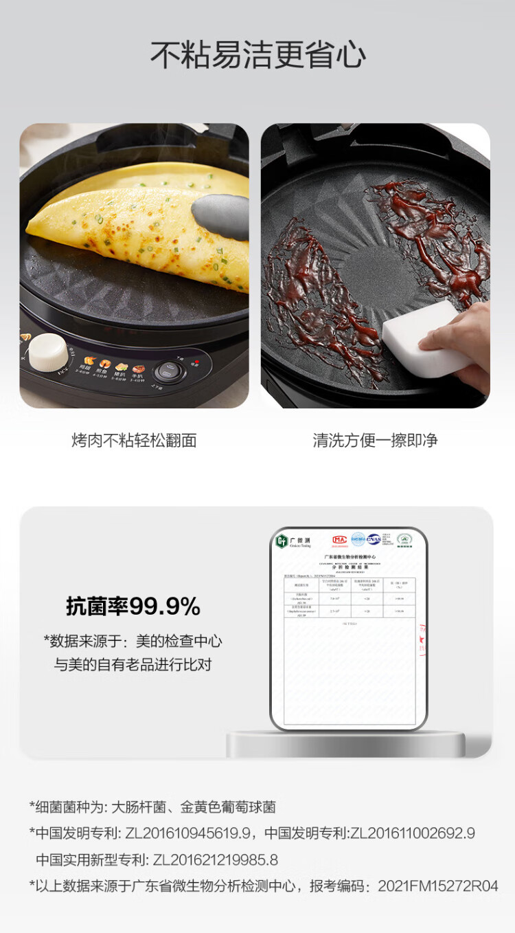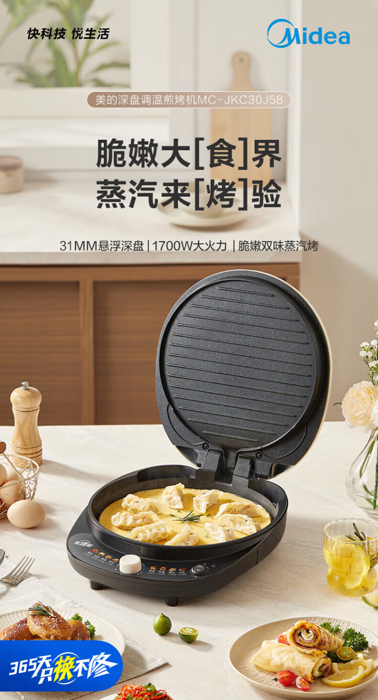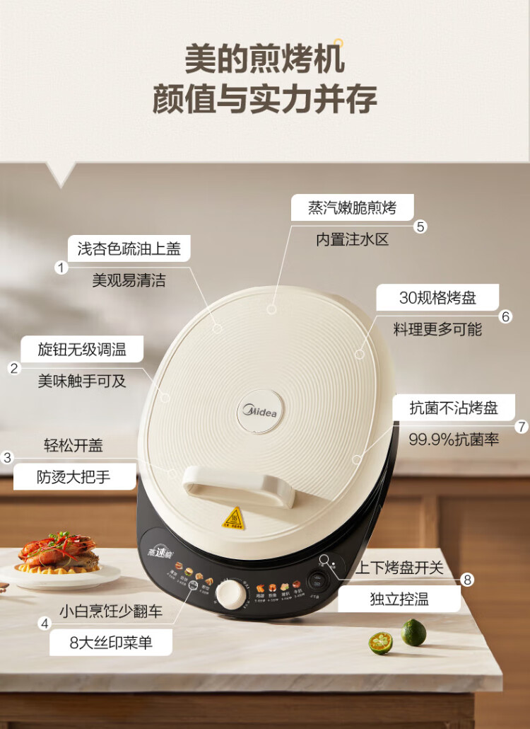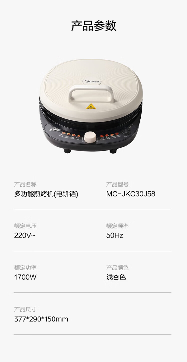 Midea electric pancake grill, electric pancake stall, household double-sided heating pancake pan, enlarged and deepened sandwich machine, breakfast machine, large size barbecue antibacterial electric frying pan 30J58