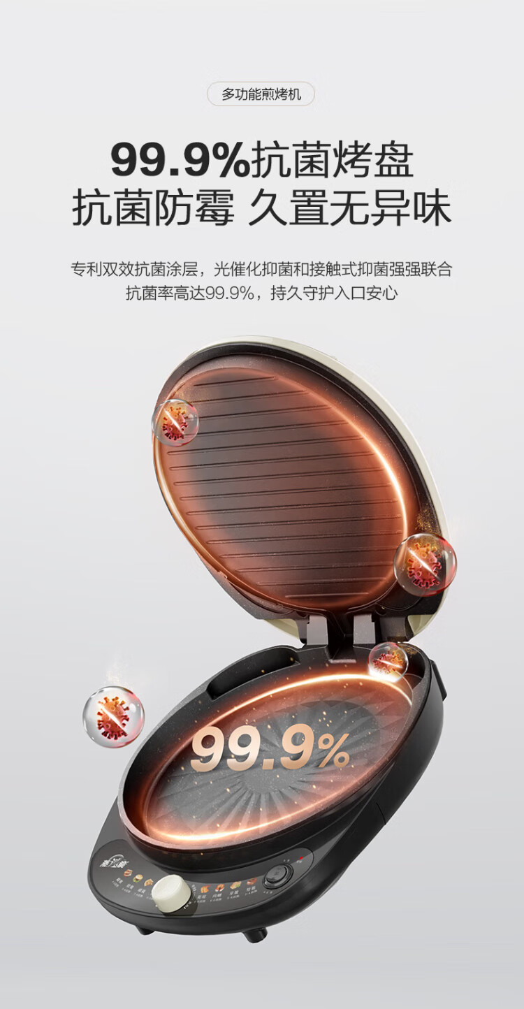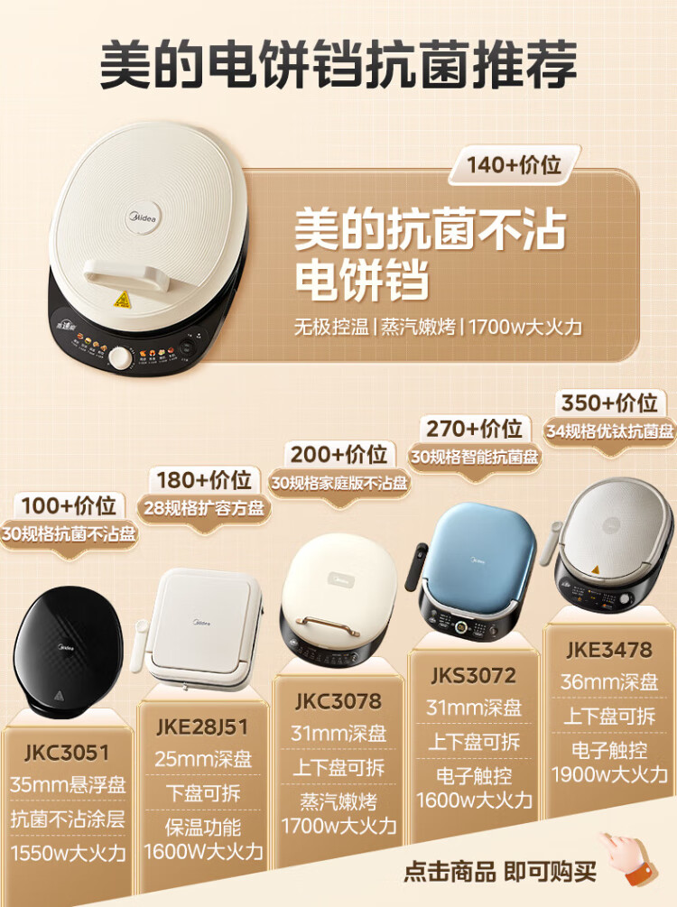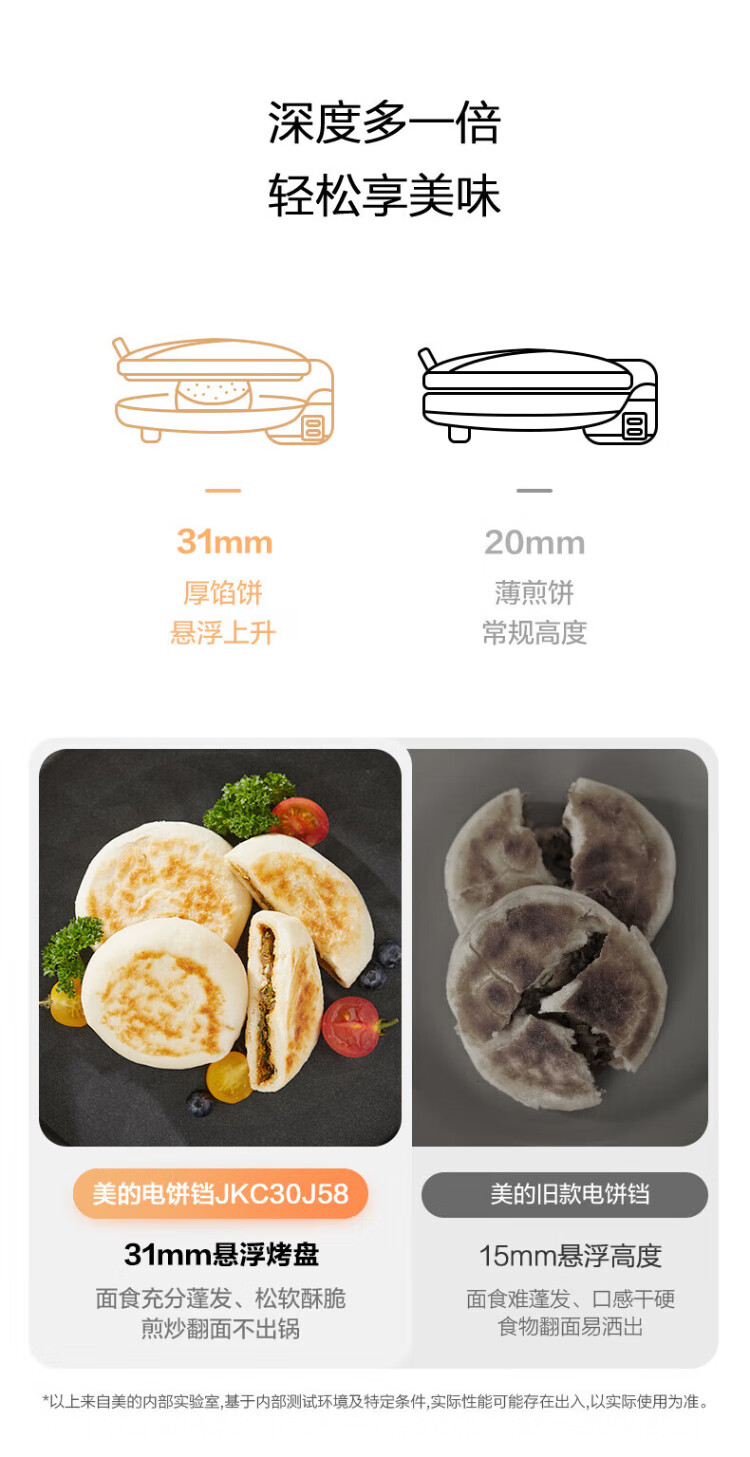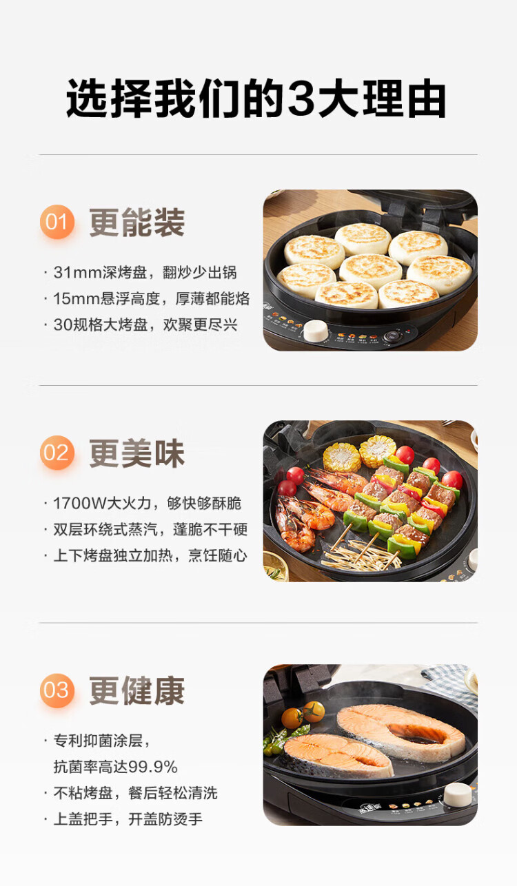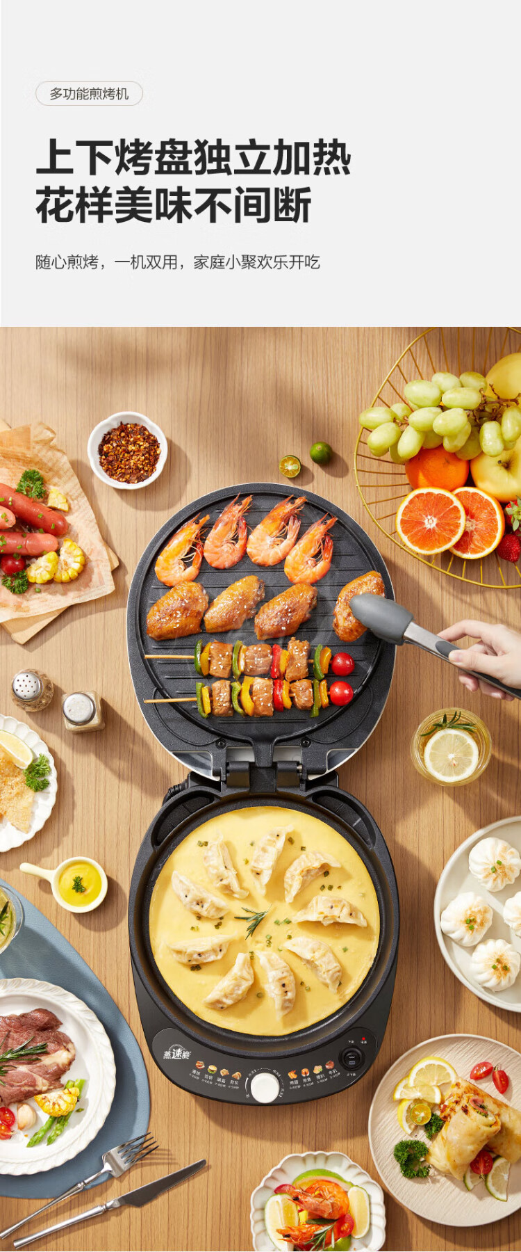 Midea electric pancake grill, electric pancake stall, household double-sided heating pancake pan, enlarged and deepened sandwich machine, breakfast machine, large size barbecue antibacterial electric frying pan 30J58