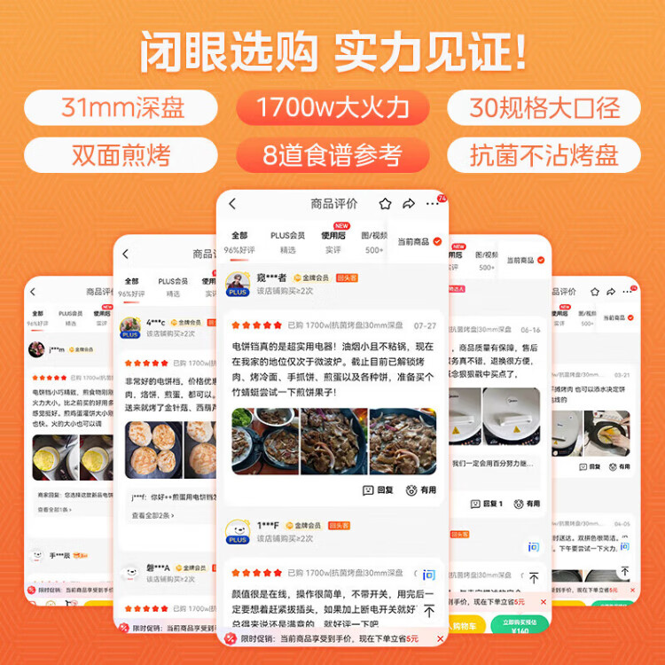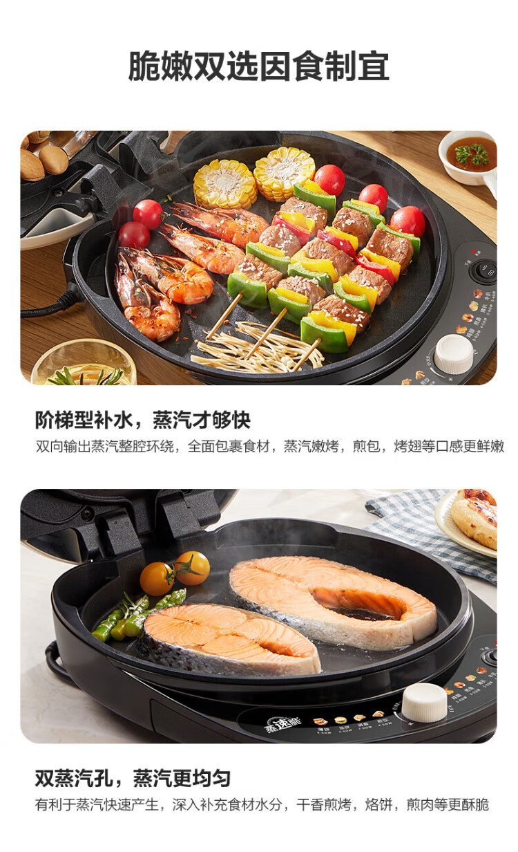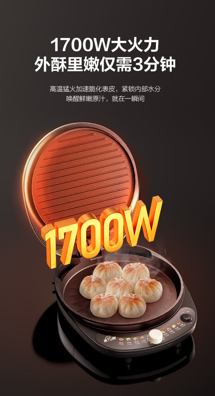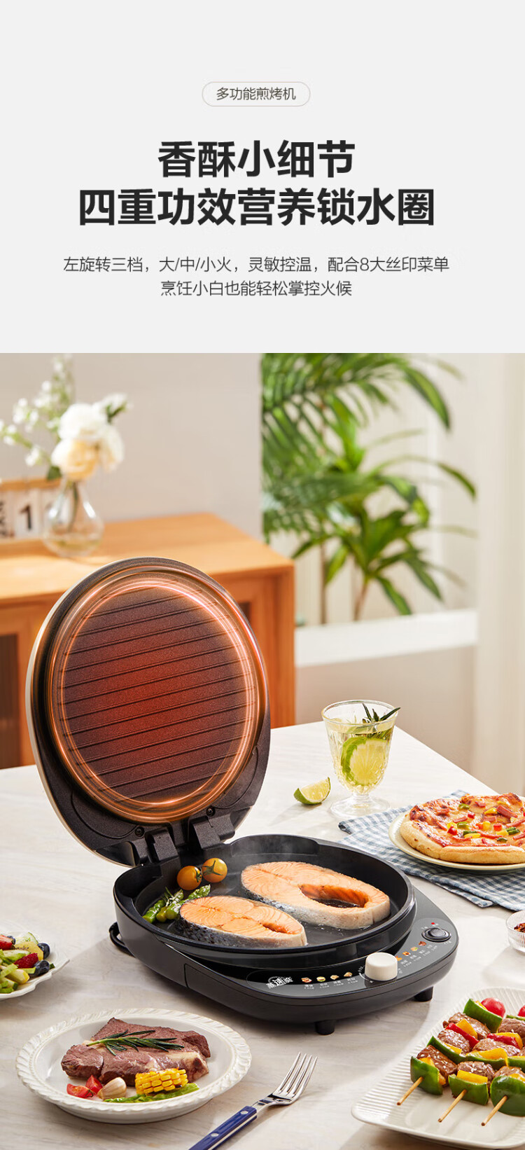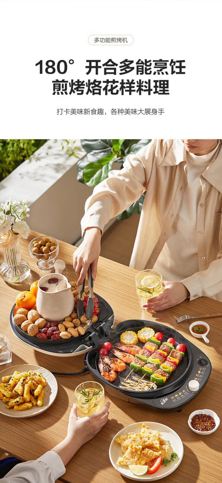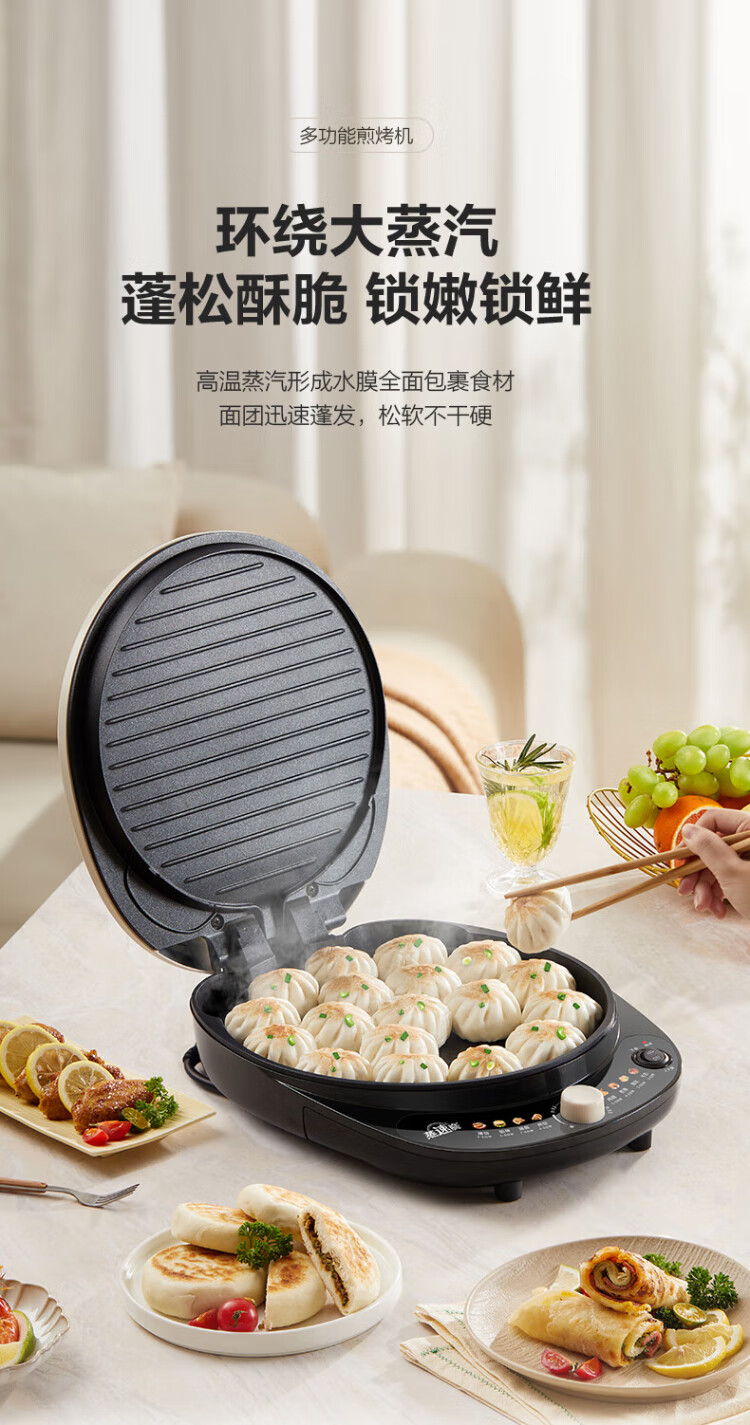Midea electric pancake grill, electric pancake stall, household double-sided heating pancake pan, enlarged and deepened sandwich machine, breakfast machine, large size barbecue antibacterial electric frying pan 30J58