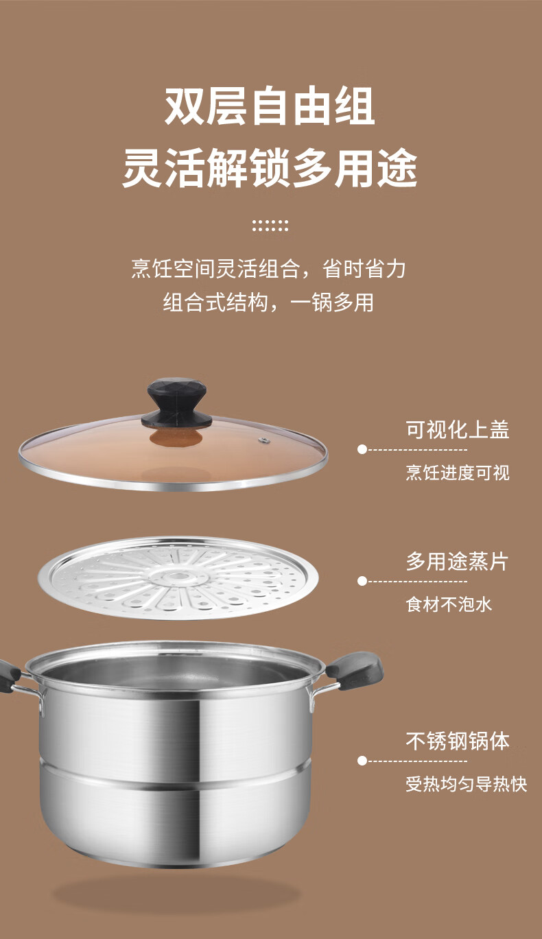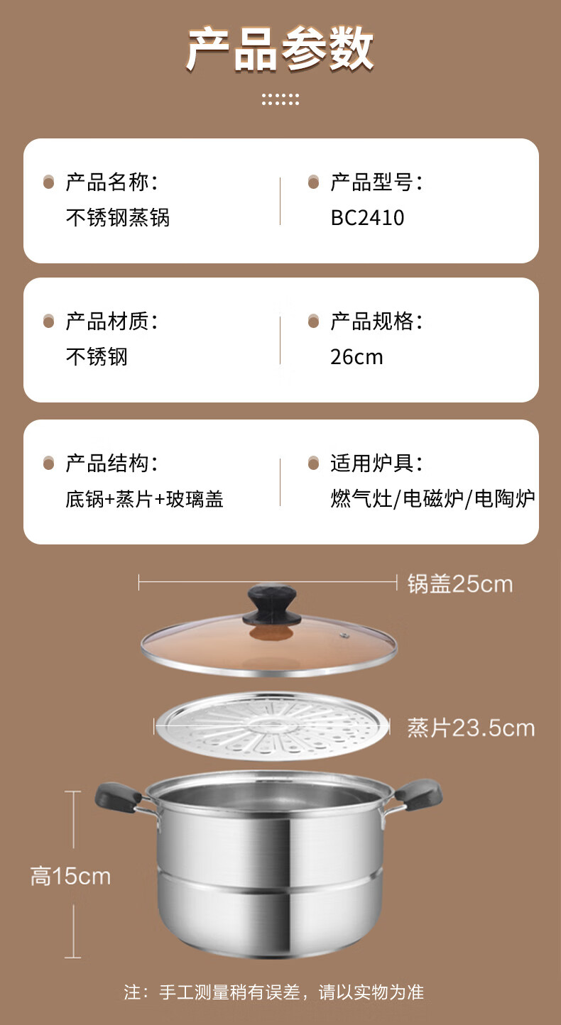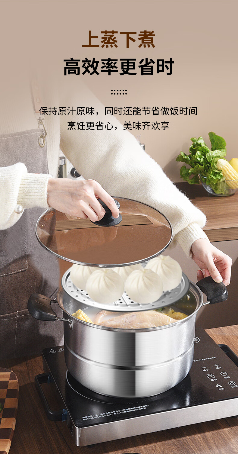 BSITN stainless steel steamer one layer 26cm steamed buns stew soup pot single layer steamer gas stove induction cooker universal 2410