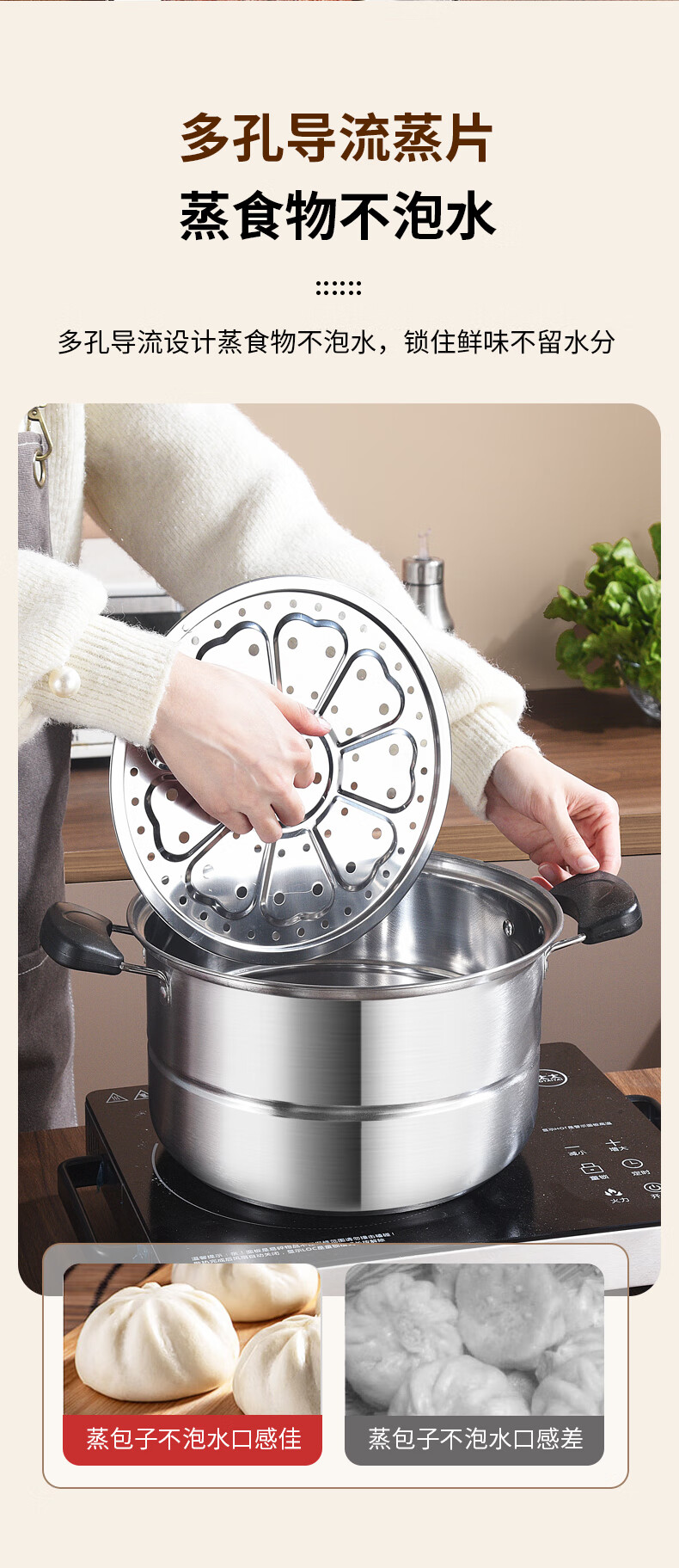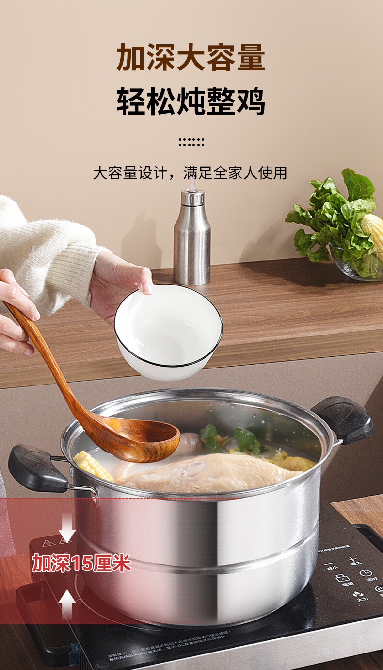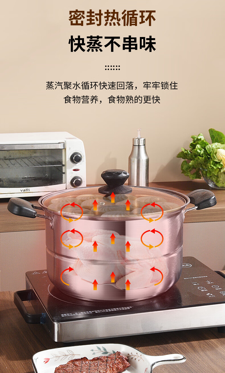 BSITN stainless steel steamer one layer 26cm steamed buns stew soup pot single layer steamer gas stove induction cooker universal 2410