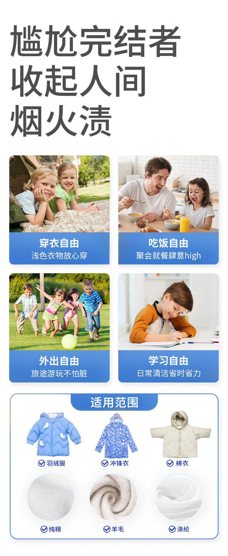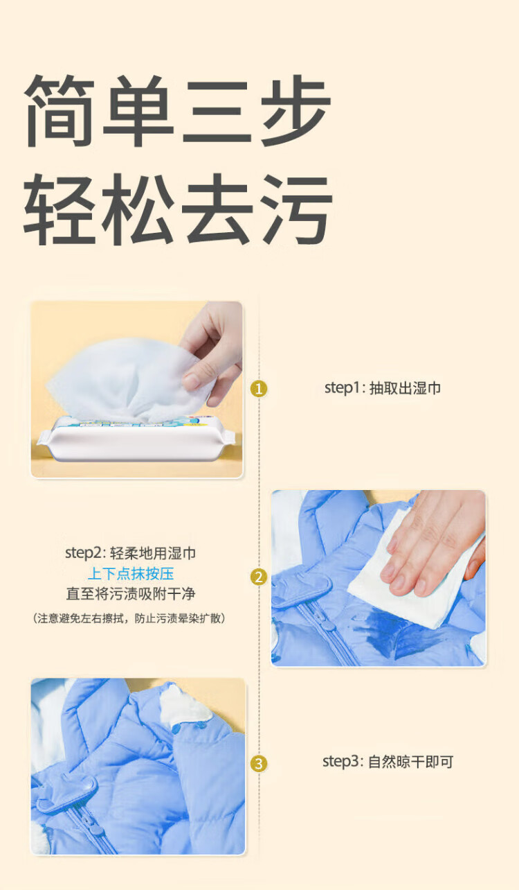 Yipinjing down jacket stain removal wipes 10 pieces * 6 to clean oil stains on collars and mouth, travel portable water-free emergency dry cleaning agent