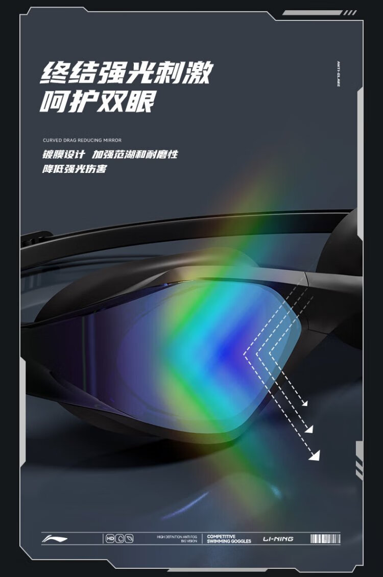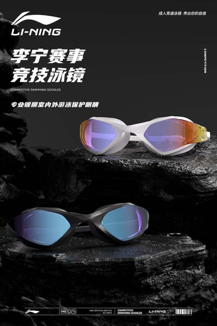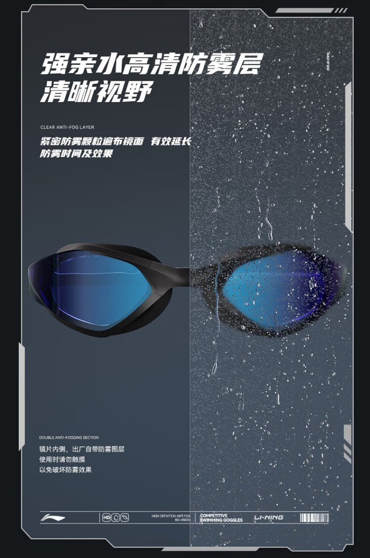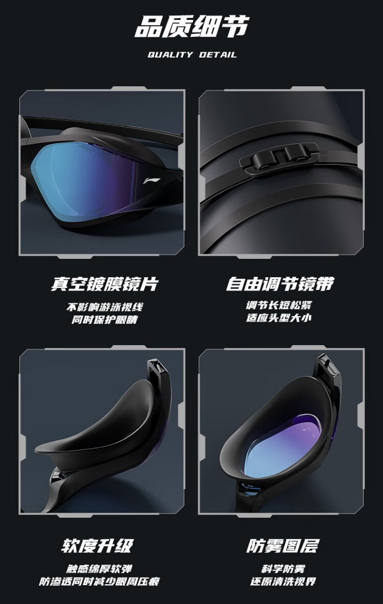 Li Ning (LI-NING) swimming goggles for men and women, waterproof coating swimming goggles, professional high-end racing adjustable mid-frame swimming goggles 1311 black