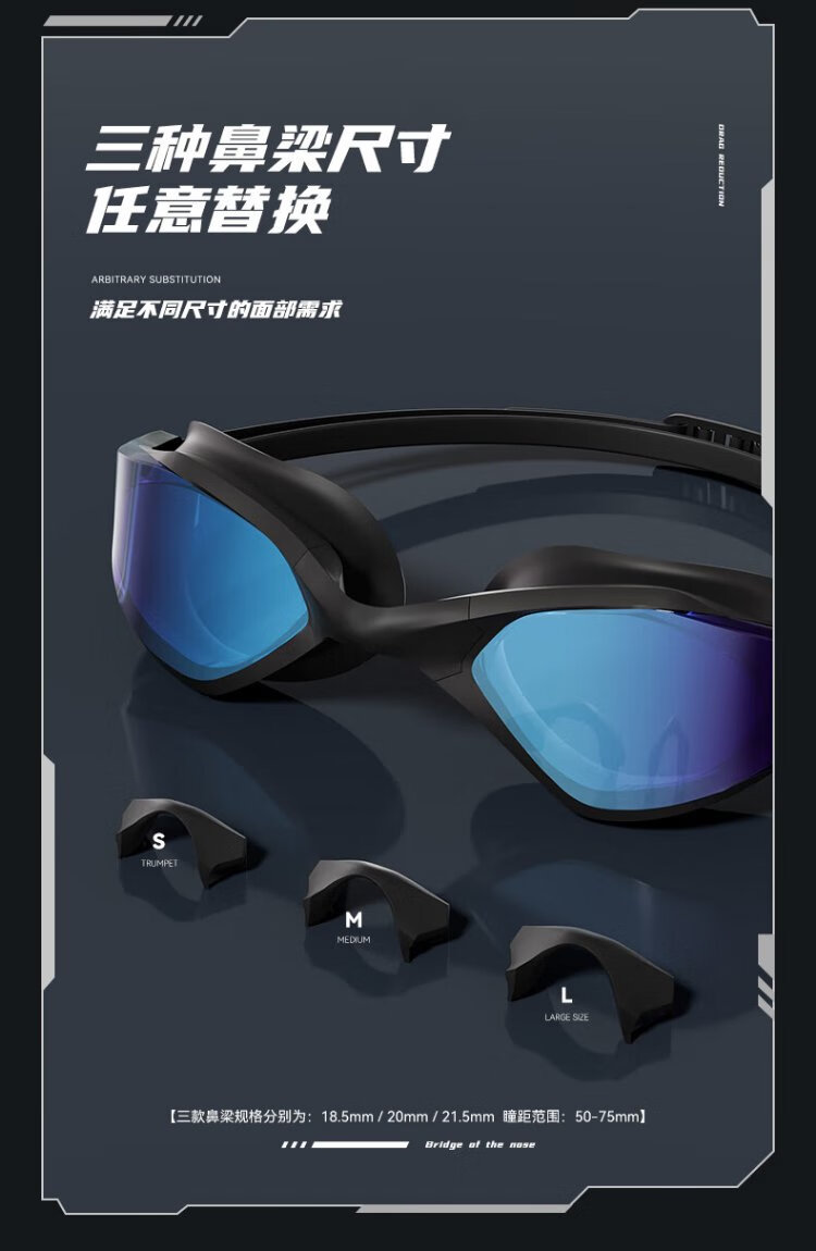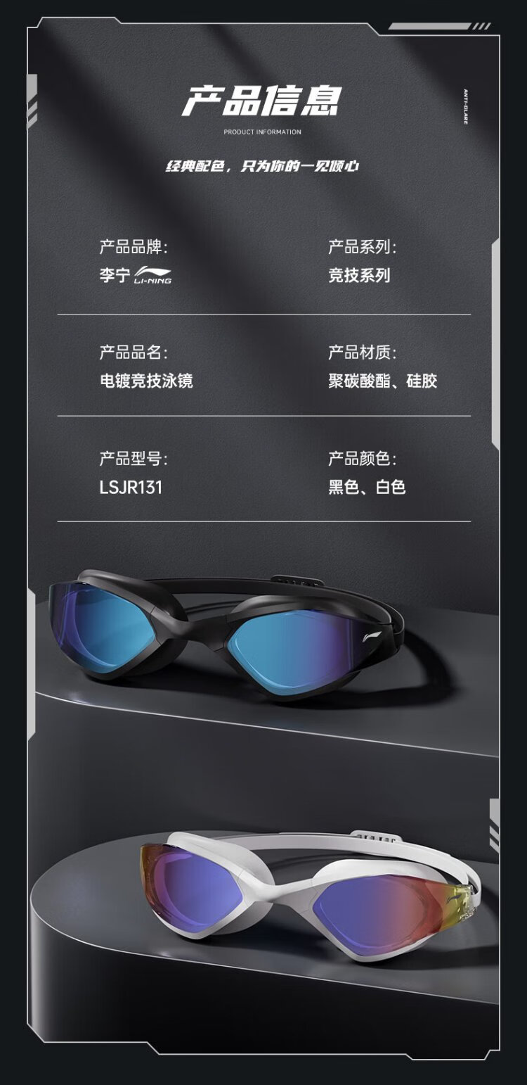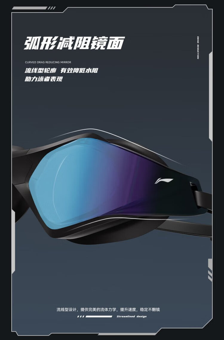Li Ning (LI-NING) swimming goggles for men and women, waterproof coating swimming goggles, professional high-end racing adjustable mid-frame swimming goggles 1311 black